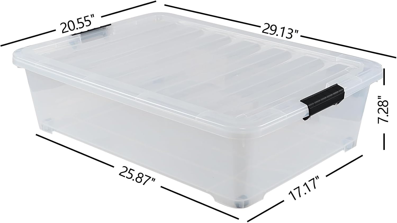 50 Quart Clear Plastic Under Bed Storage Bin with Lid, Underbed Storage Container with Wheels, 3-Pack