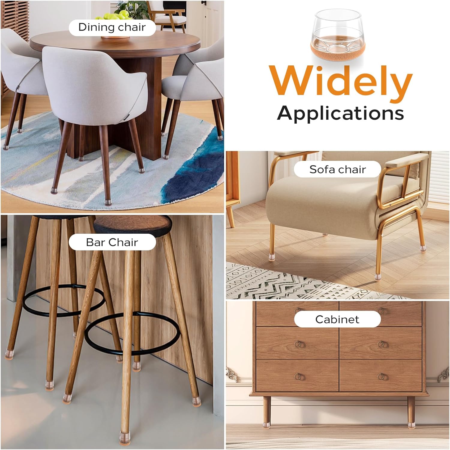 - Enhanced Felt & Wear Resistance- With a 360° fully enveloping felt bottom design and heightened felt thickness, engineered to accommodate various angles of slanted chair legs. Our chair leg floor protectors have a stretch, and elasticity which can maintain longer usage time.