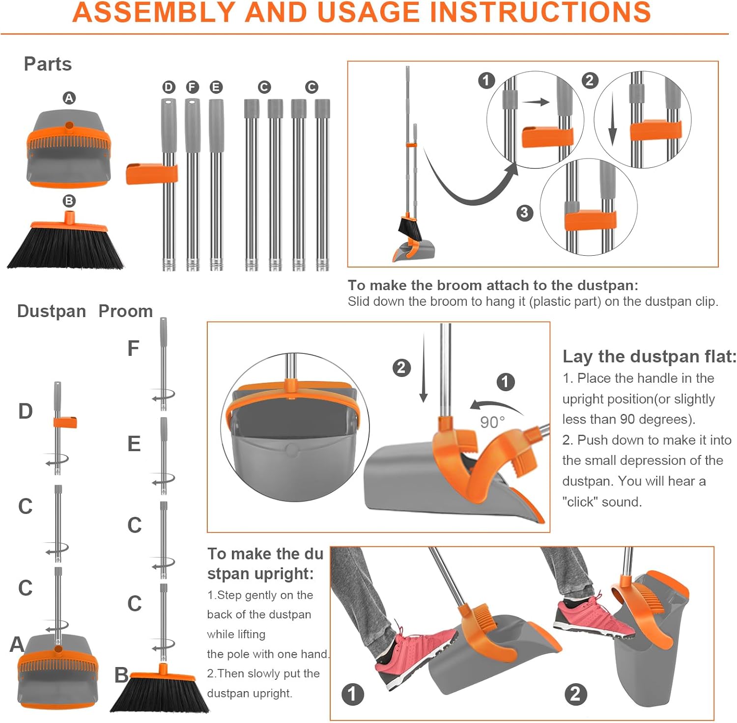 - Improved Broom and Dustpan Combo Set: Upgrade your cleaning routine with this enhanced combo, a flexible and valuable addition to your home cleaning tools. Featuring a sturdy stainless steel handle and a roomy dustpan, this set is perfect for efficient cleaning. The soft rubber lip forms a tight seal between the floor and dustpan, ensuring a mess-free experience. Sweep confidently with this broom and dustpan set, designed to eliminate ash leakage.