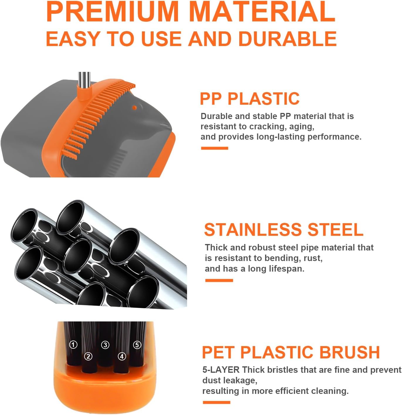 - Hassle-Free Pet Hair Cleanup with Innovative Design: Thanks to the comb on the dustpan, removing pet hair from the broom is a breeze—no hands needed. This perfect combo is designed for quick and efficient clean-ups, especially in homes with cats and dogs. The broom and dustpan set with a long handle ensures pet hair is easily tackled, making cleanup a hassle-free experience.