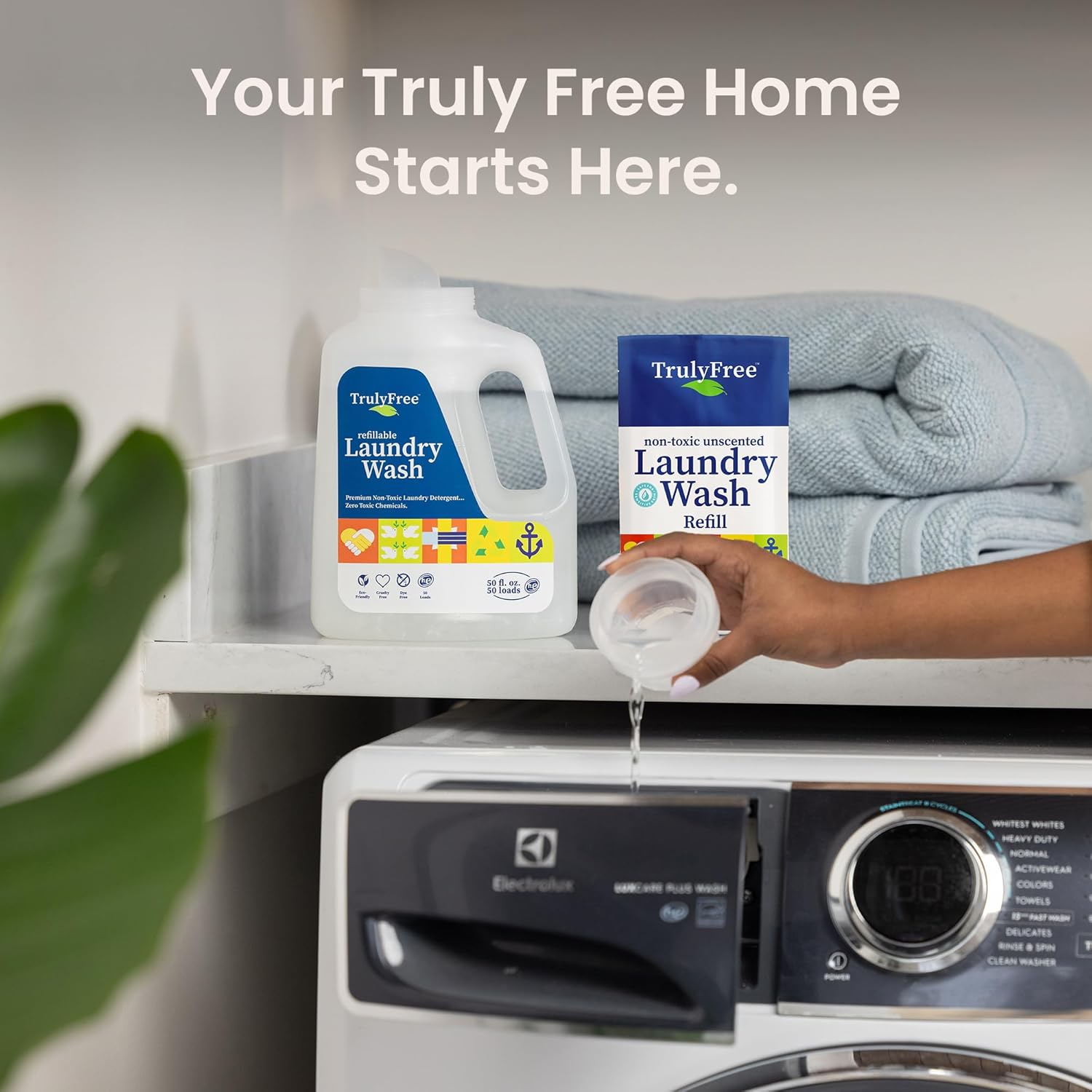 Truly Free Laundry Wash Detergent for Sensitive Skin, Gentle & Safe for Baby Clothes | Plant-Based, Natural Ingredients | Unscented | Include 1 Refillable Bottle (50 Loads)