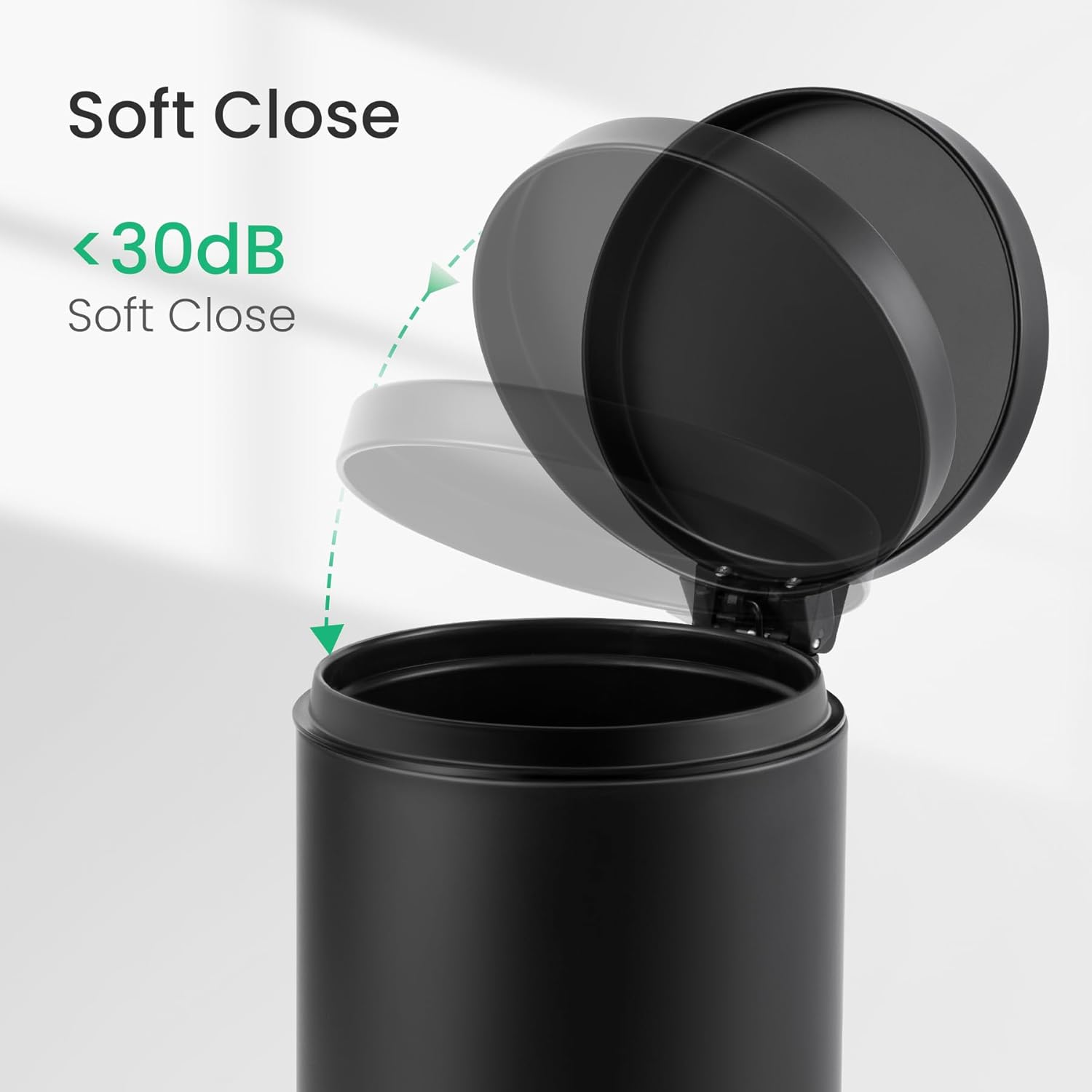 - Soft Close Lid: The round garbage can's lid closes quietly and gently, preventing any slamming
