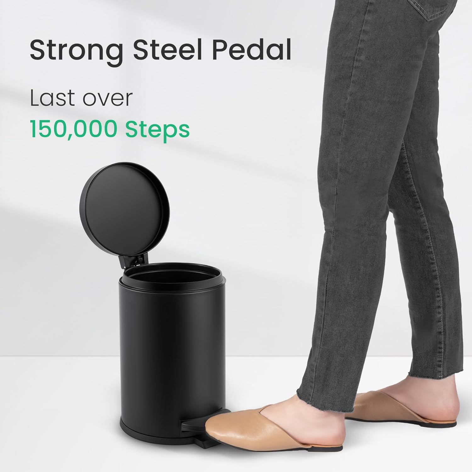 - Convenient Size: This 4.5 liters / 1.2 gallons small black trash can with lid is practical for bathrooms or other small spaces