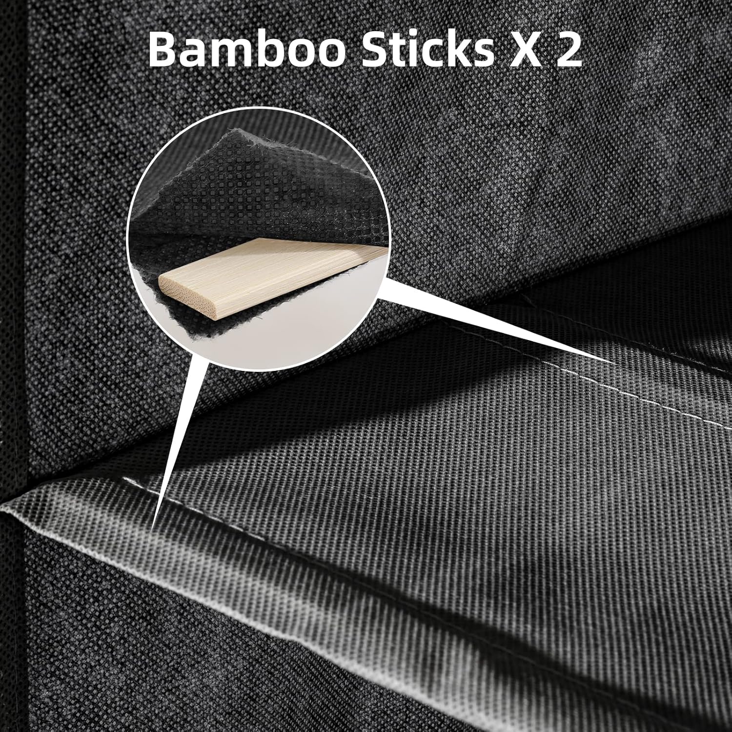 - 【Premium Material】Made of durable and healthy non-woven fabric. What sets it apart? YRCBEHFU Hanging Closet Organizer use 2 pcs sturdy bamboo inserts at each shelf to prevent bending, comes with a strong hook system that significantly boost load-bearing capacity.