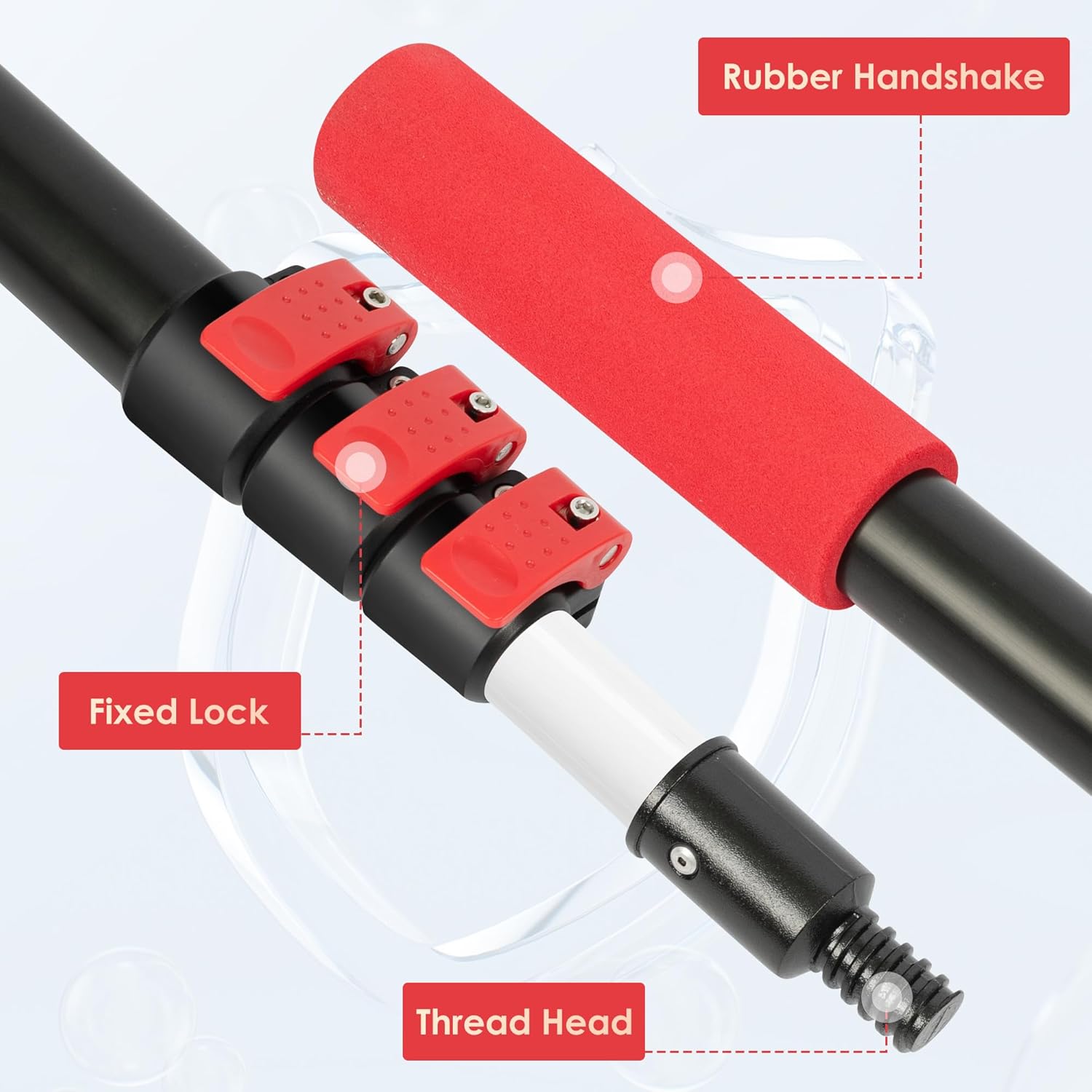 - Freely Adjustable Length: 3-stage adjustable extendable pole with lock buttons, easily extend telescopic rod to desired length and secure pole with the lock buttons, 20 feet high reach to clean spider webs up to 2nd floor outdoor.