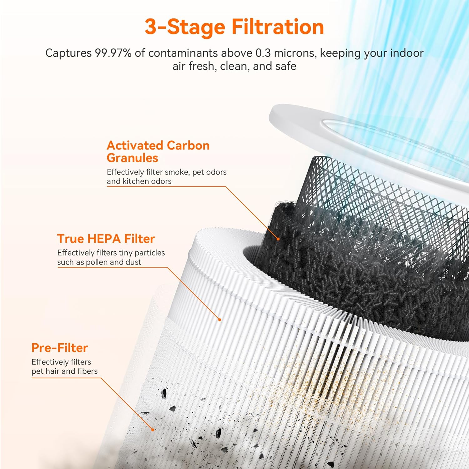 - ✅【Safe and Healthy AIRROMI Air Purifier】: The noise level of our high-efficiency activated carbon particle filter air purifier is as low as 22 decibels, as quiet as breathing, ensuring a tranquil environment while effectively purifying the air. Rest assured of the product quality - all our materials are meticulously selected, and our air purifiers have undergone multiple quality tests and certifications: Energy Star/CARB/EPA/ETL/CA65/FCC.
