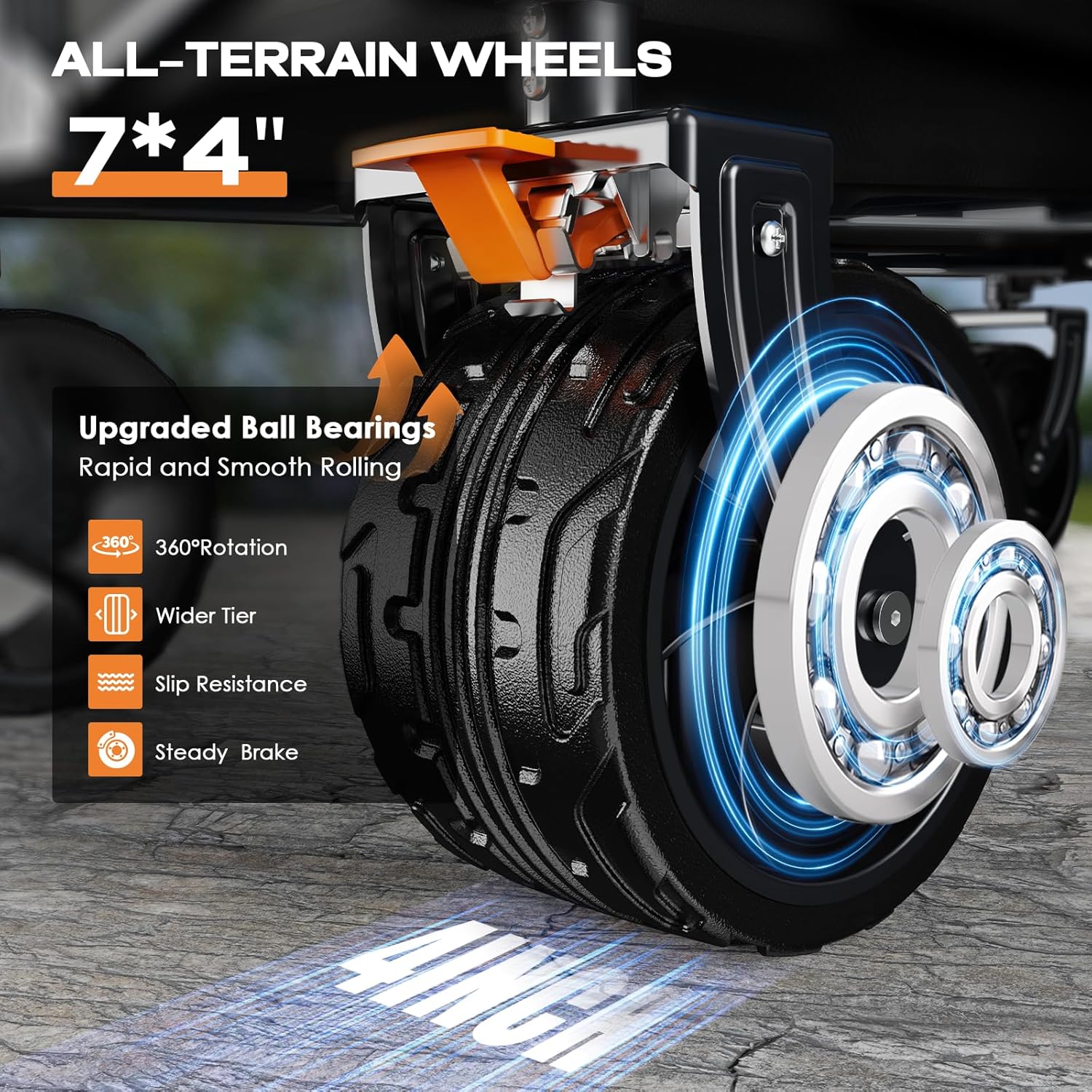 - 【Long-Lasting Efficient Transport】: Wide wheels do better on complex terrains. The sturdy wheels are made of PP+PVC, which has perfect maneuverability and higher transportation efficiency than others. It can roll over obstructions such as rocks, roots, and even curbs. The wheels have double bearings to maximize the carrying capacity and safety, which reflect its performance. Keep in mind, though, wagons don't work on soft sand.