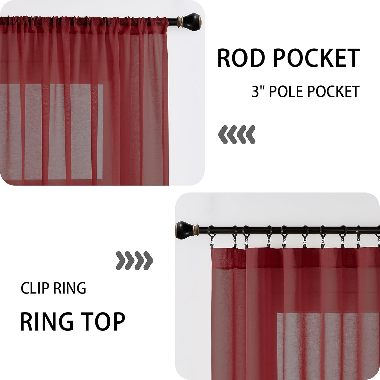 Tollpiz Short Sheer Door Curtains Closet Linen Textured Curtains Sheer Doorway Light Filtering Voile Patio Glass Door Rod Pocket Curtain French Door, 54 x 40 inches Long, Burgundy Red, Set of 1 Panel