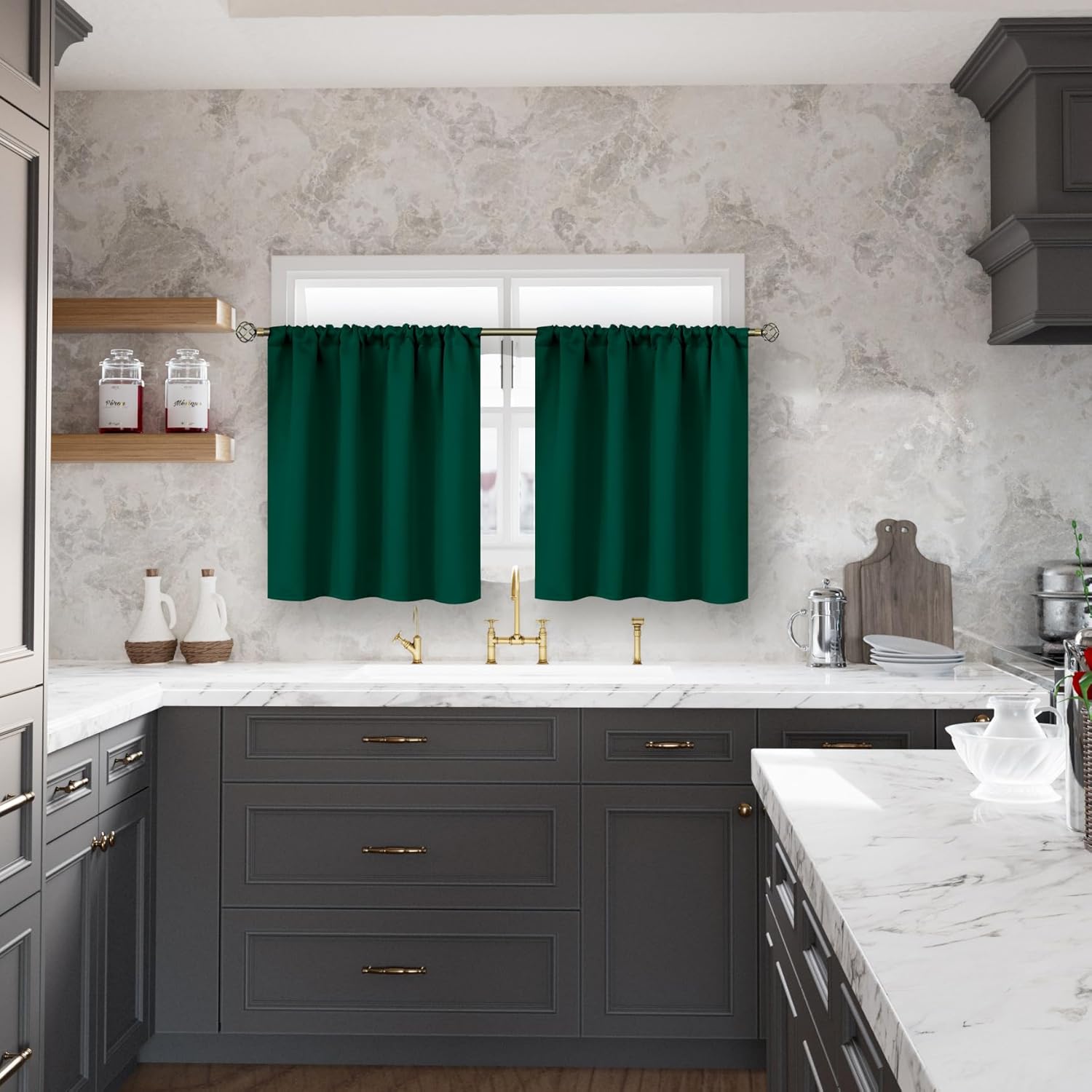 - Package Includes: Set of 2 emerald blackout curtains; each panel measures 42 Inch wide by 36 Inch long.