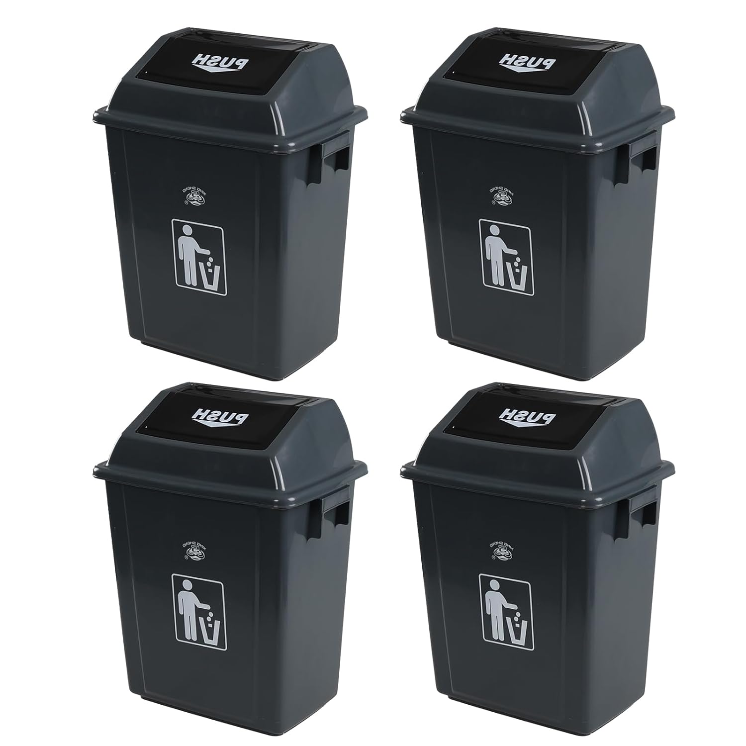 4-Pack 8 Gallon Kitchen Trash Can with Swing Lid, Plastic Kitchen Garbage Can, Gray