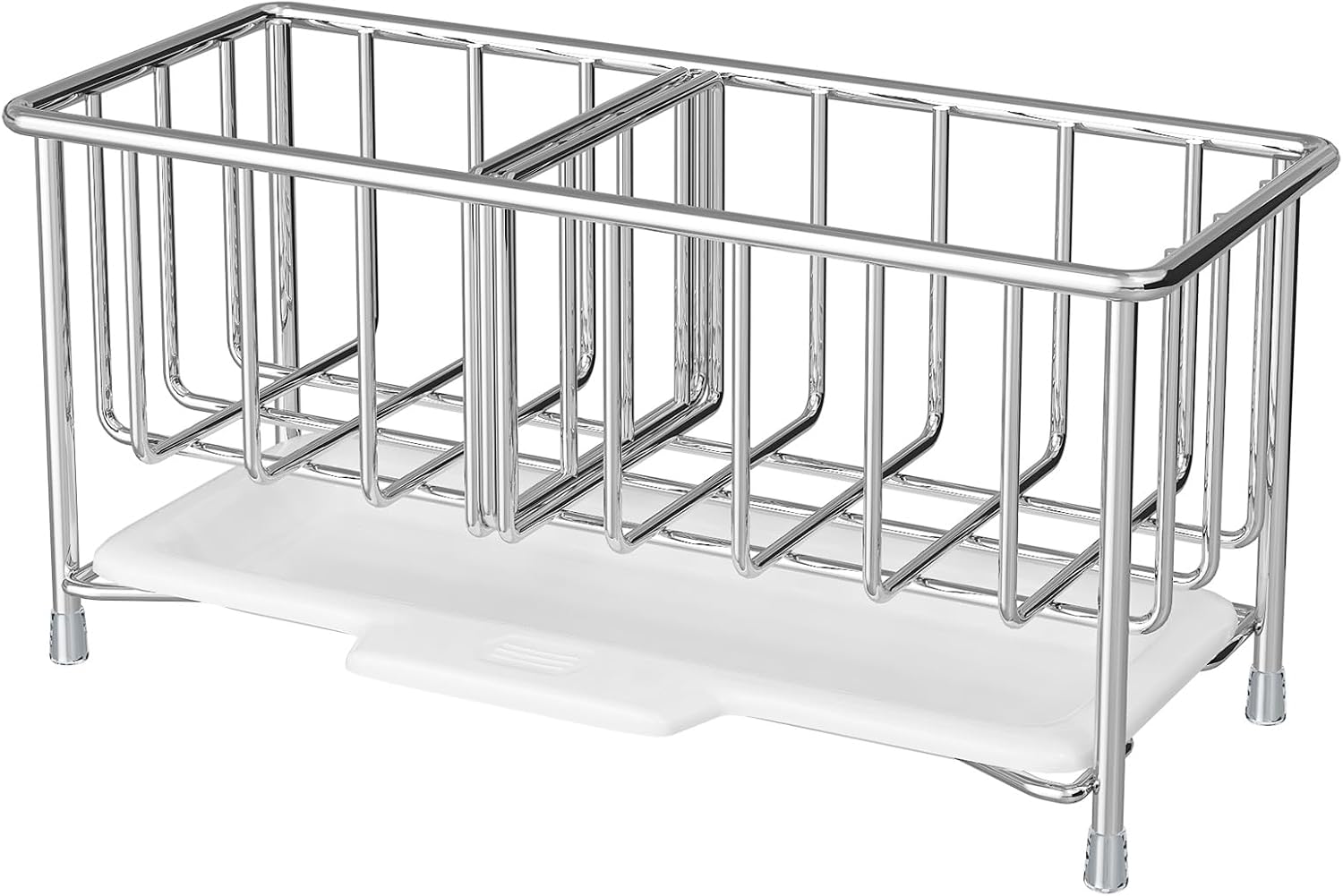 - 【Dry and Ventilated】 This kitchen sink sponge holder features a split-sink design with a removable tray, which can effectively drain the moisture from kitchen cleaning tools and make them dry faster. The discharged moisture falls on the tray for easy pouring and cleaning, which can always keep the desktop clean and tidy, and keep it dry and ventilated