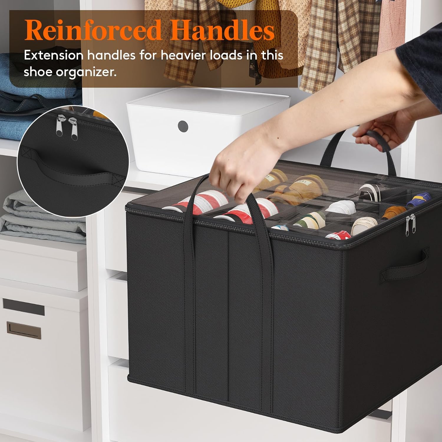 - Easy to Access: Featuring a transparent dust cover, this shoe storage organizer ensures easy identification and protection of your shoes. The durable double-sided zipper allows for smooth opening and closing, making it convenient to retrieve or store shoes.