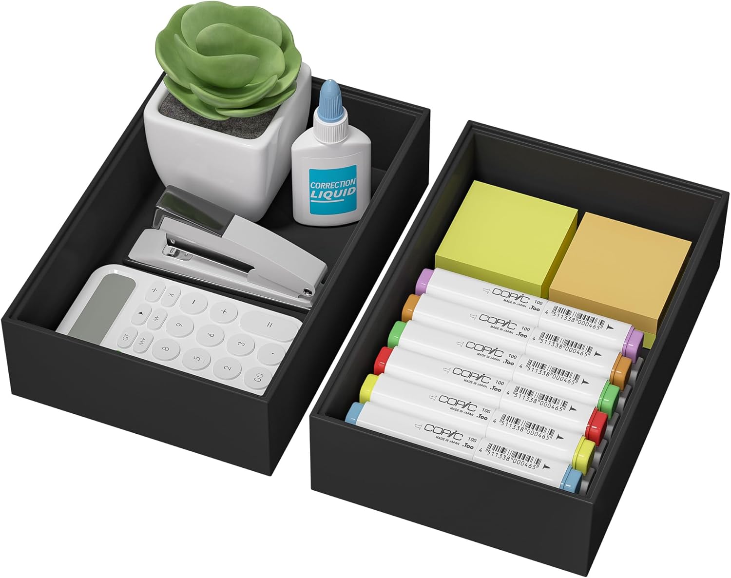 - 2 PCS Office Desk Organizer - Our desk drawer organizer tray for small office desk accessories brings comfort to find what you need and helps you to increase productivity. This office drawer organizer set offers ample space for storing most office desk stationery, such as pens, erasers, highlighters, notes, staplers, pencils, scissors, tapes, clips, etc