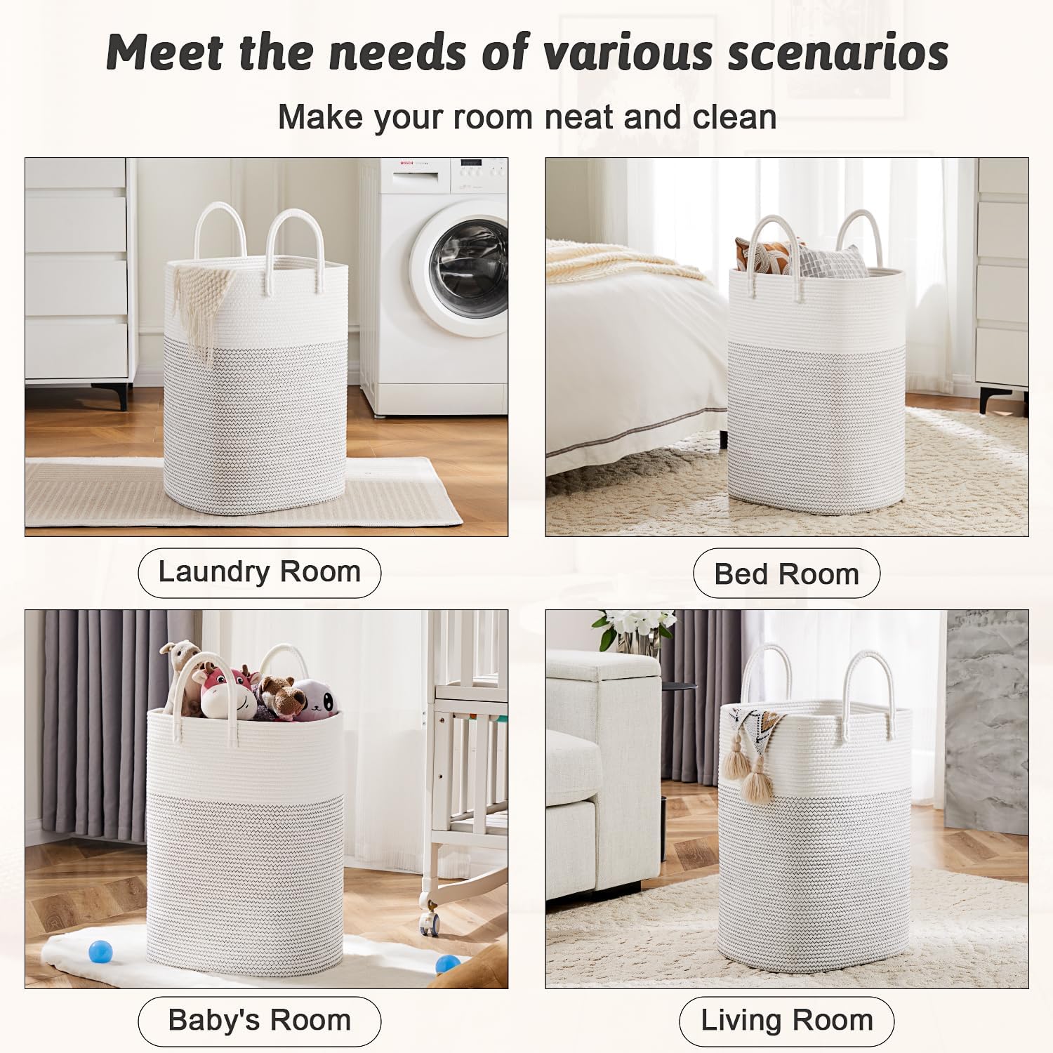 - 🌻【Elegant Natural Charm】 The stylish design of our cotton rope laundry basket brings a touch of natural elegance to your home decor.It seamlessly blends with any room and serves as an eye-catching decorative piece.It's the perfect gift choice for enhancing the beauty of homes,adding a touch of sophistication.