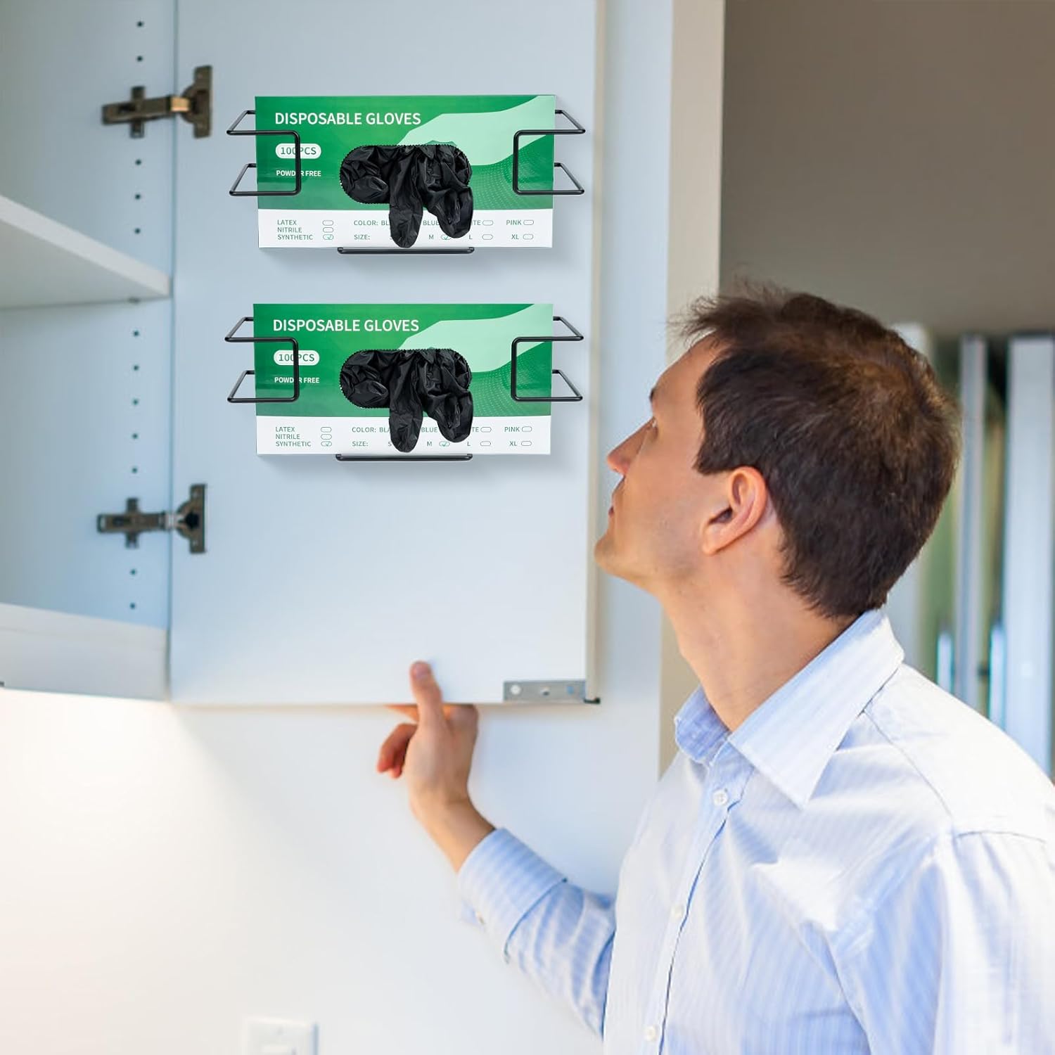 Glove Box Holder 2 Pack, Disposable Glove Dispenser Wall Mount, Metal Glove Rack Organizer for Rubber Latex Gloves Facial Tissue, Black
