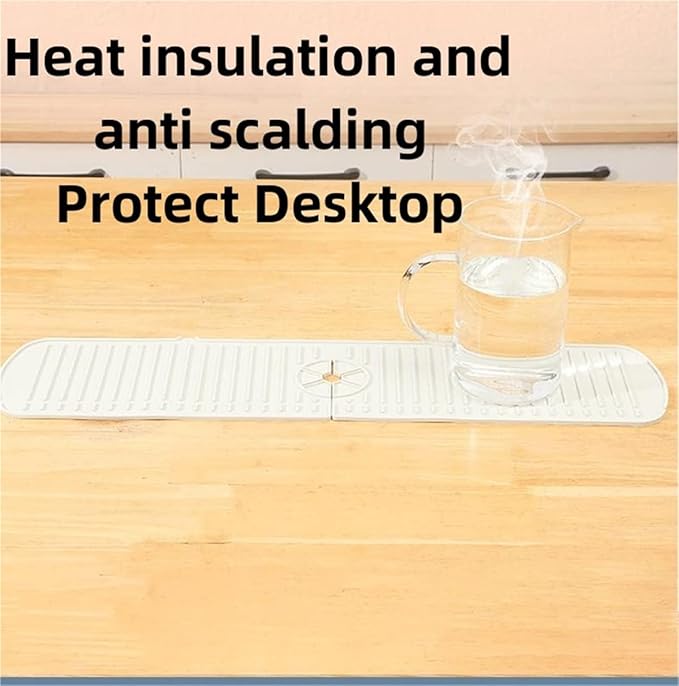 - QUALITY MATTERS - Kitchen sink mats is made of food-grade BPA-free platinum silicone and is highly durable. 60x14cm/24x5.5inch, pre-cut complex shapes of faucets, the diameter of the middle hole is adjustable, suitable for faucet pipes within 2.5 inches.