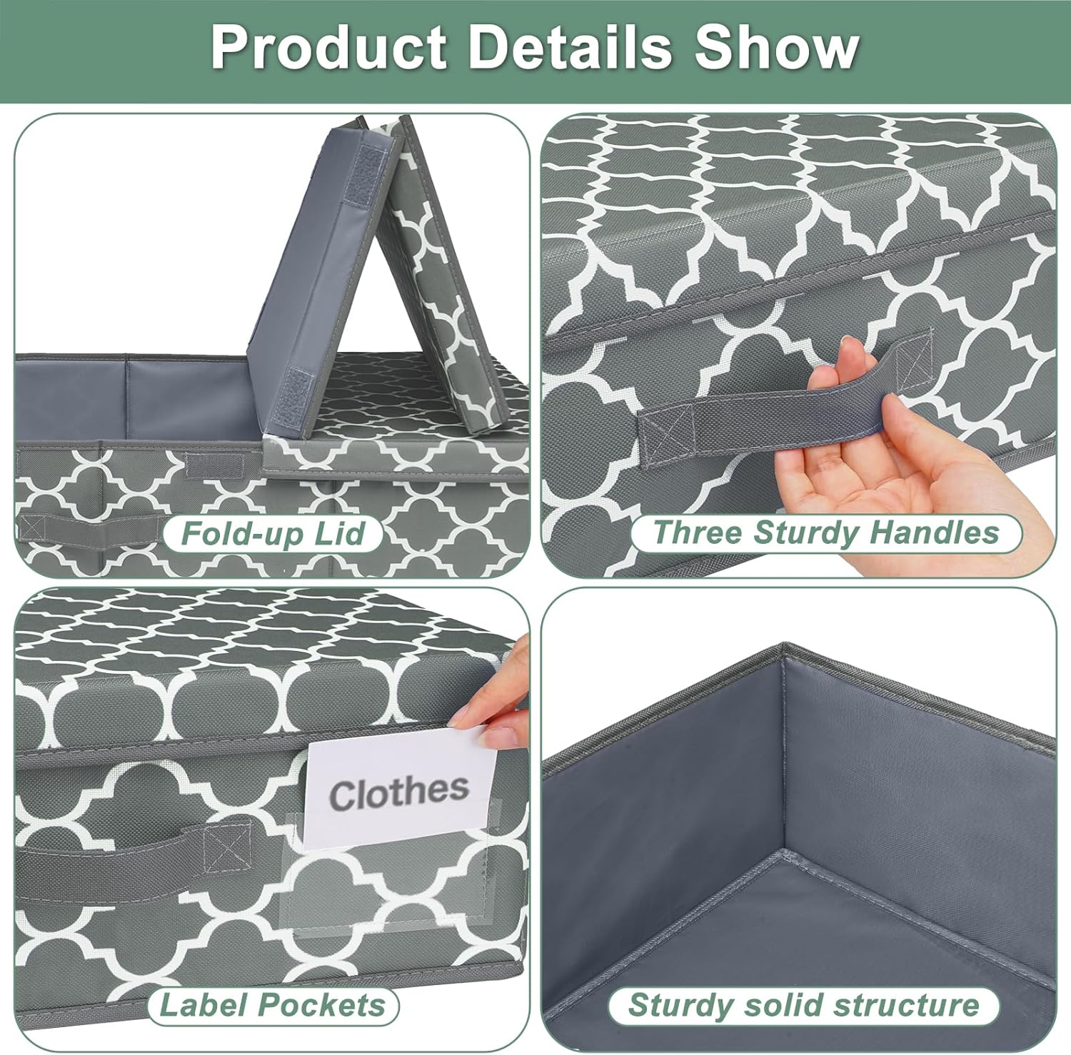 - 👍STURDY STRUCTURE WITH CONVENIENT HANDLES: Constructed with strength in mind, the under bed storage boxes are built to withstand daily use. This under-bed storage features a sturdy structure with 3 reinforced handles that provide a reliable way to move and manage your stored items with ease. It's easy to lift and pull out from beneath your bed. The sturdy structure ensures durability and reliability. Also a benefit for residential university graduate, it can be used as a duffel bag or under bed storage.