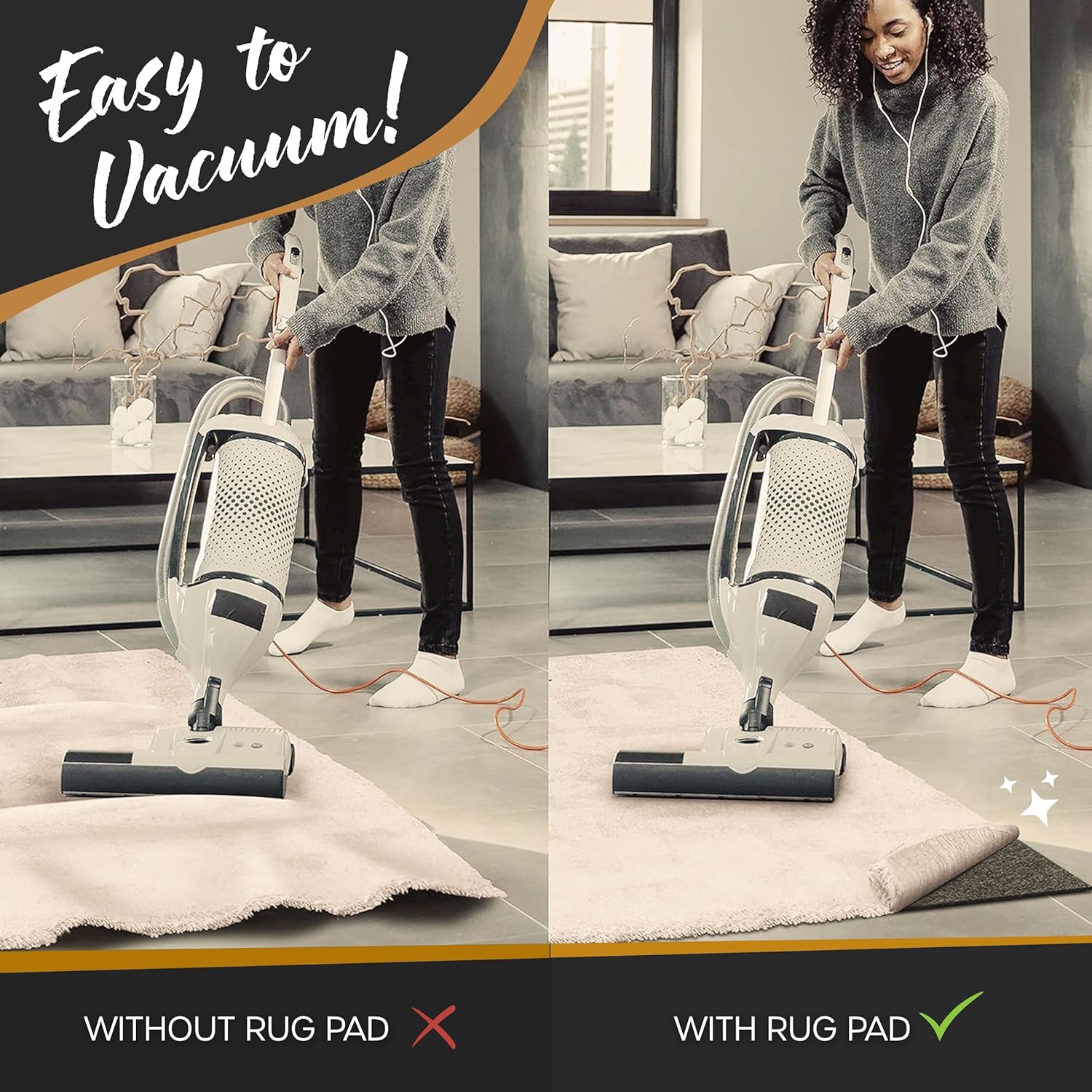 - CUSTOM-FIT & EASY MAINTENANCE NON SKID RUG GRIPPER : Easily customize your rug liner non slip carpet pad , thanks to its trimmable design. Use household scissors to adjust your under carpet padding for the perfect fit with any rug size or style. Wherever you use them, these dependable rug stays for hardwood & other surfaces keep coverings flat, even during vacuuming! Whether in the living room, kitchen, or bedroom, our versatile carpet grippers for hardwood floors improve both comfort & style.