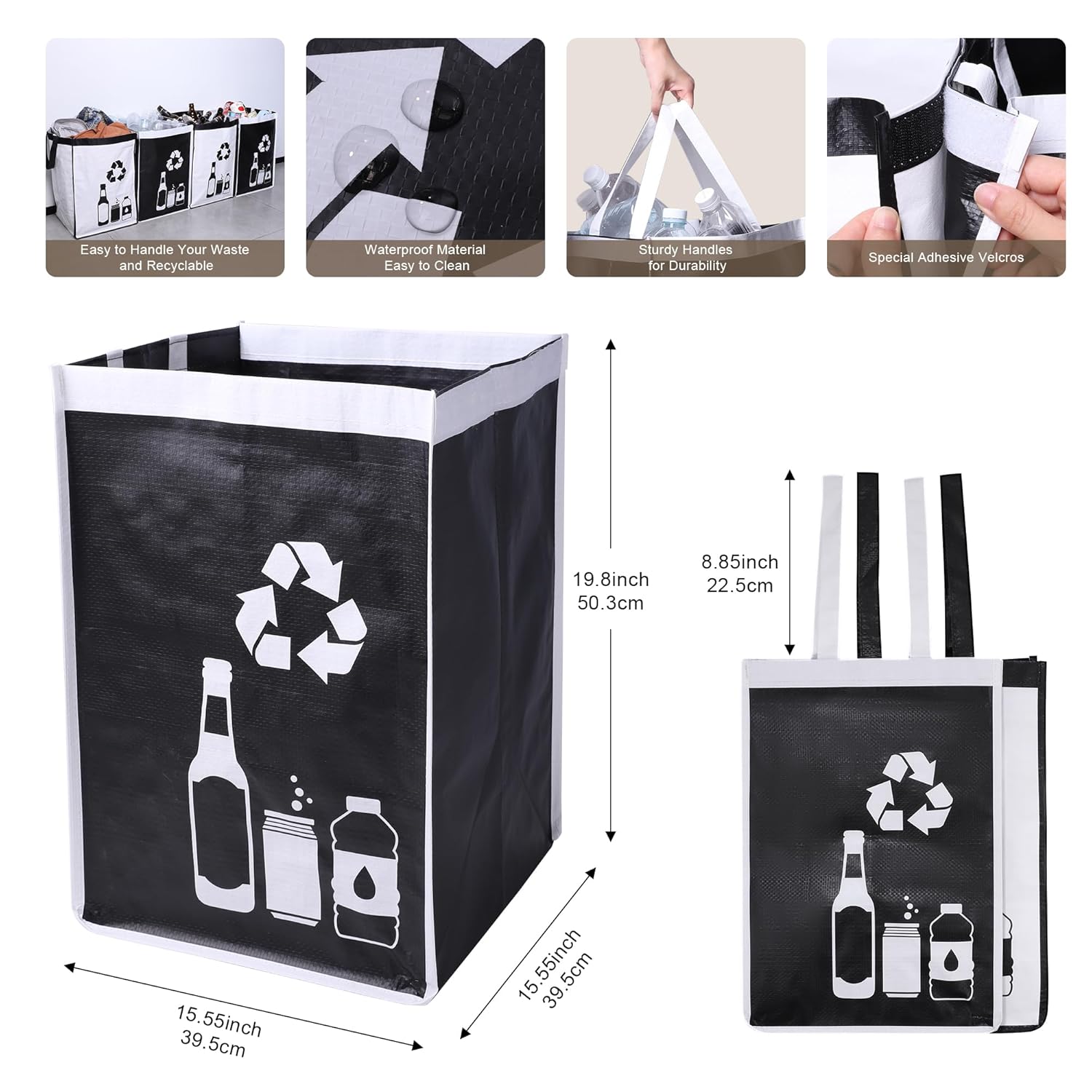 Recycle Waste Bag for Kitchen Home- Large Indoor Recycling Bins Trash Sorting Organizer, Reusable and Waterproof, 4 Pack