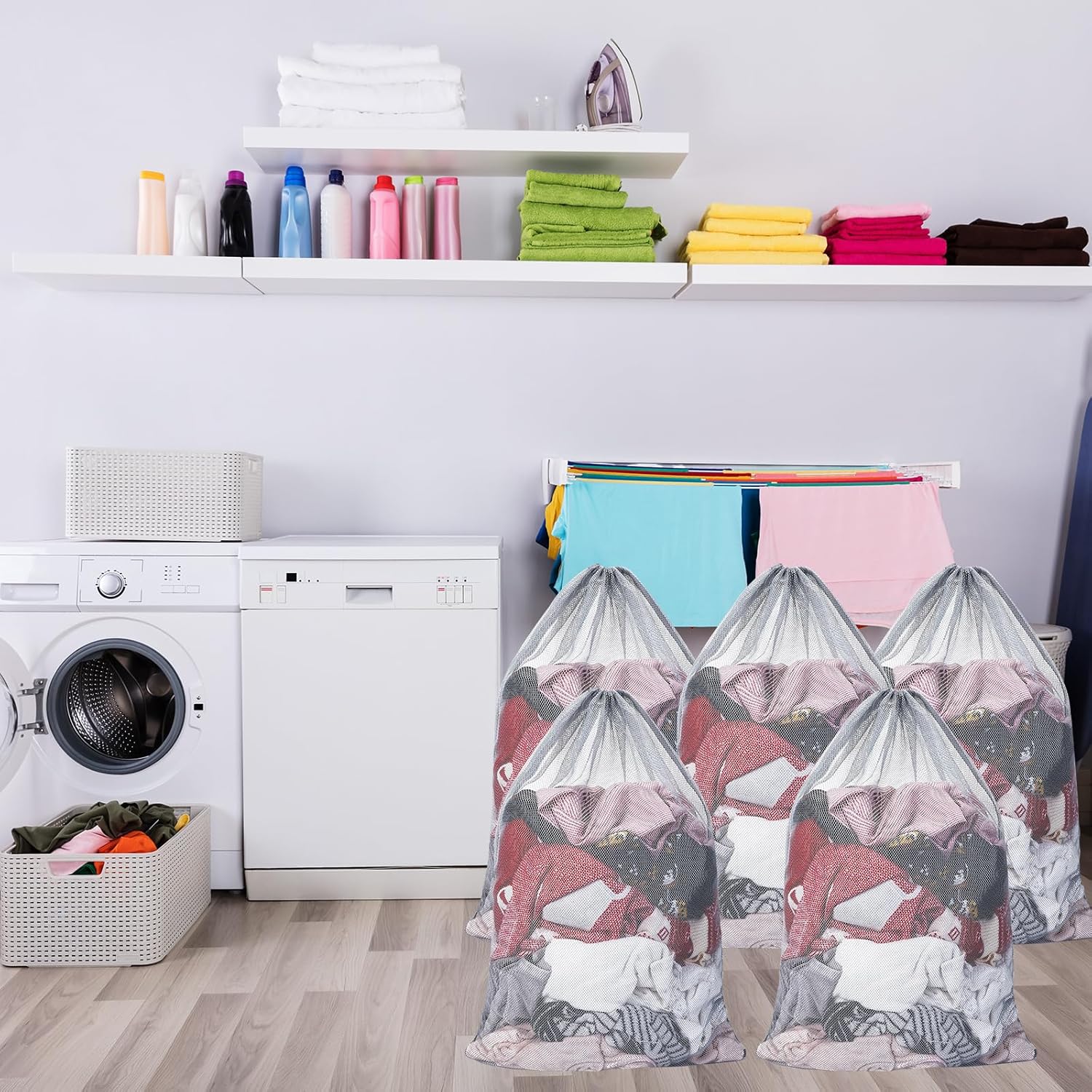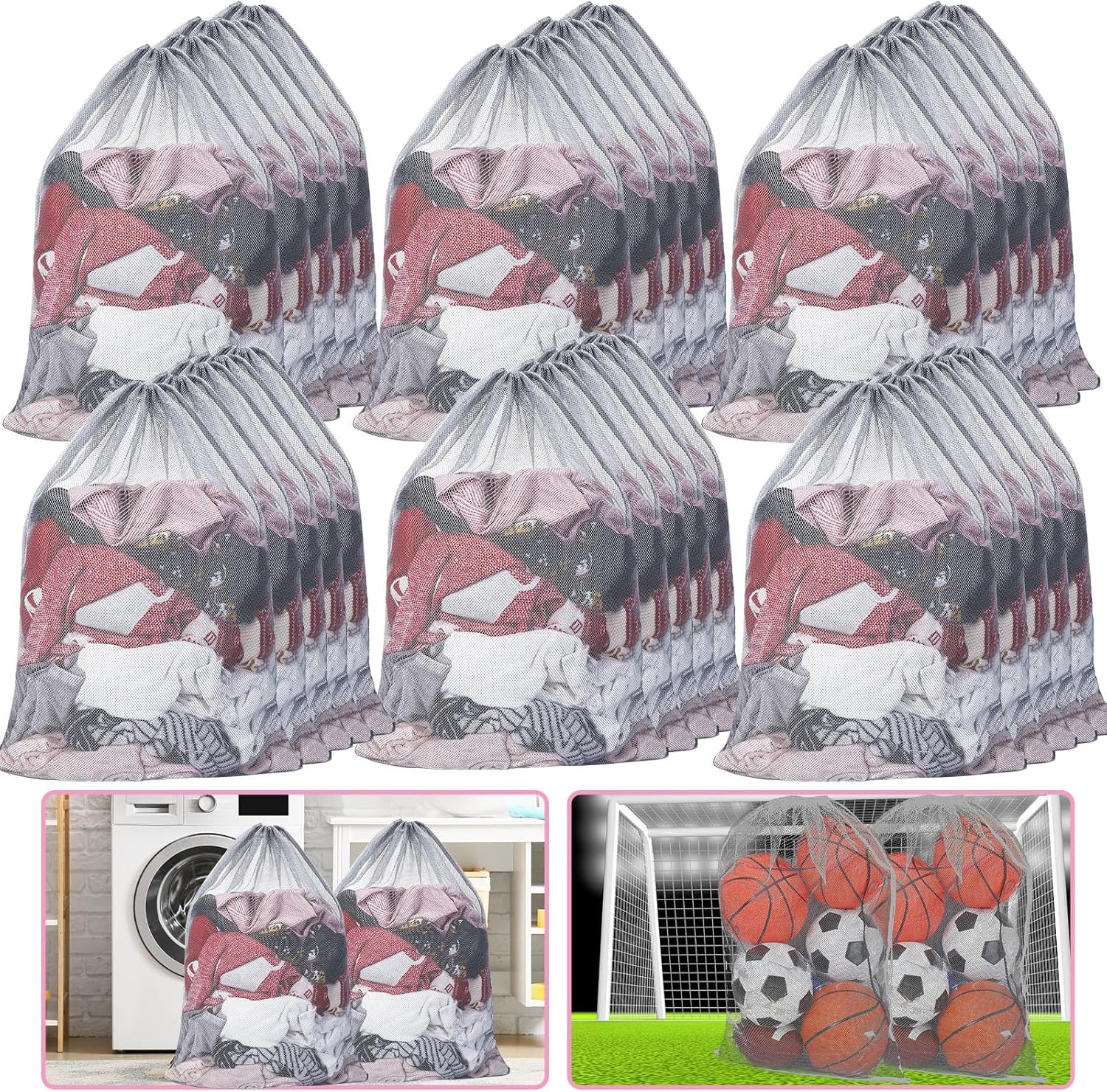 Berlune 30 Pack 24 x 36 Inches Large Mesh Bags for Laundry, Wash bags, Sturdy Mesh Material Closed with Drawstring, Factory, University, Dormitory, Travel and Apartment Dweller (Gray)