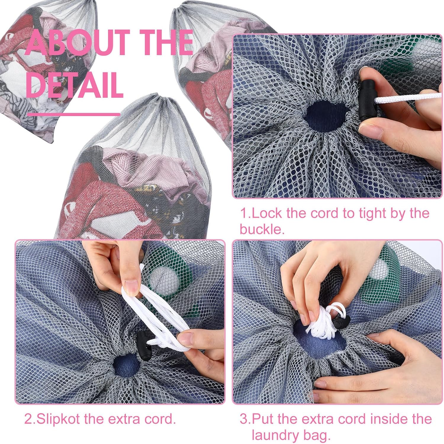 - Drawstring Locking Closure: the mesh bag has a locking buckle and drawstring buckle to prevent overflow; If you are using them as a laundry bag, tuck the buttons inside the bag to prevent the drawstring from loosening in the washing machine