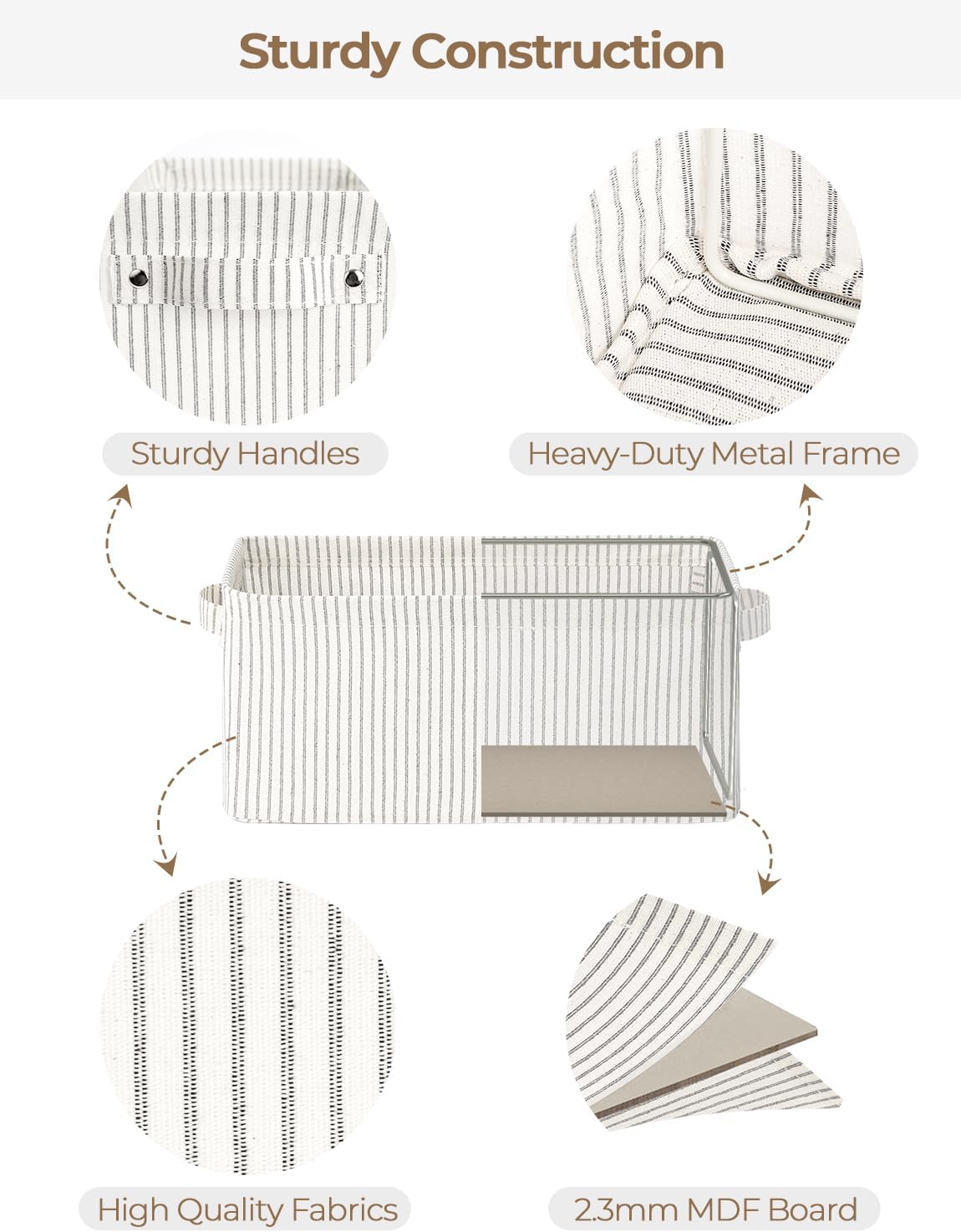- Sturdy Structure: The fabric storage bin features metal frames supporting the top and sides, with a high-quality MDF base at the bottom, ensuring excellent overall structural stability.