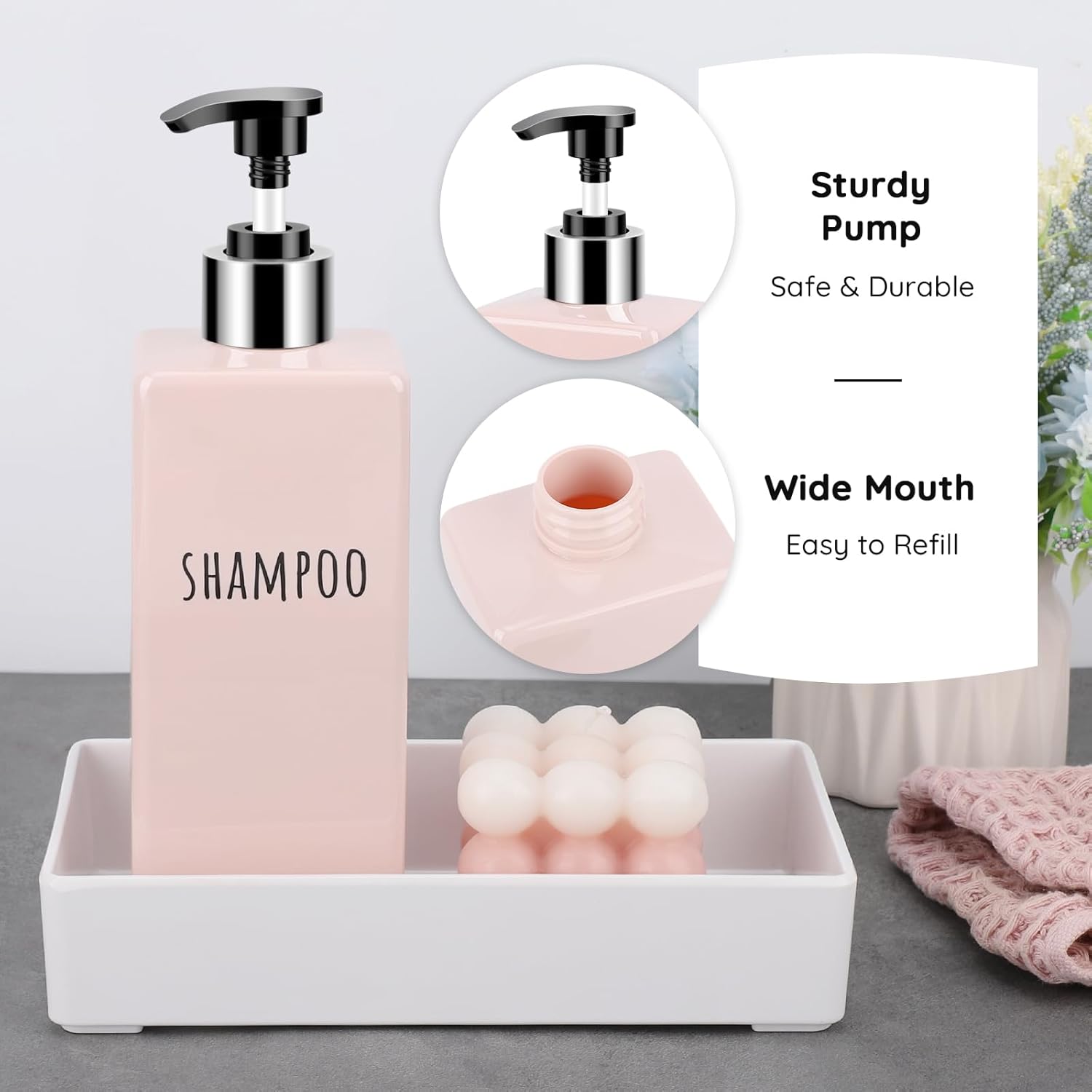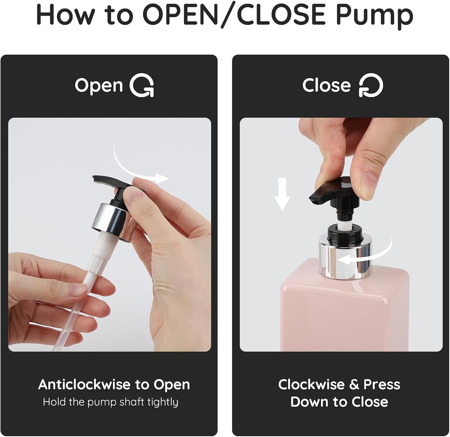- 【Easy to Refill and Use】Remove the pump head and refill lotion with the wide mouth. Gently press the pump head to dispense it.