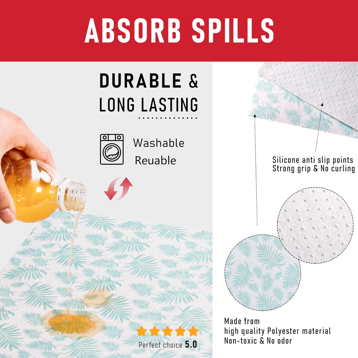 - Special Feature : Easy to cut, Non-Adhesive, Strong Grip, Super Absorbent, Washable