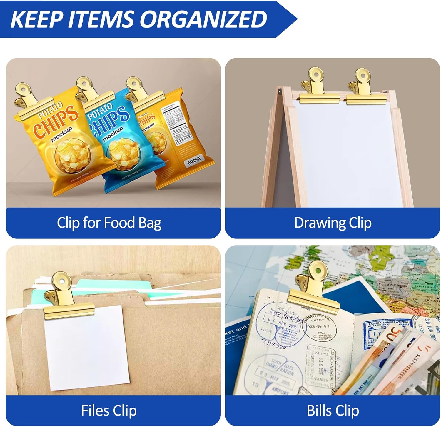 - Strong Grip & Tightness: Bulldog binder paper clips built-in high-elasticity spring to ensure a solid grip. Prevents your important documents from falling out. Protects your food from moisture and spoilage