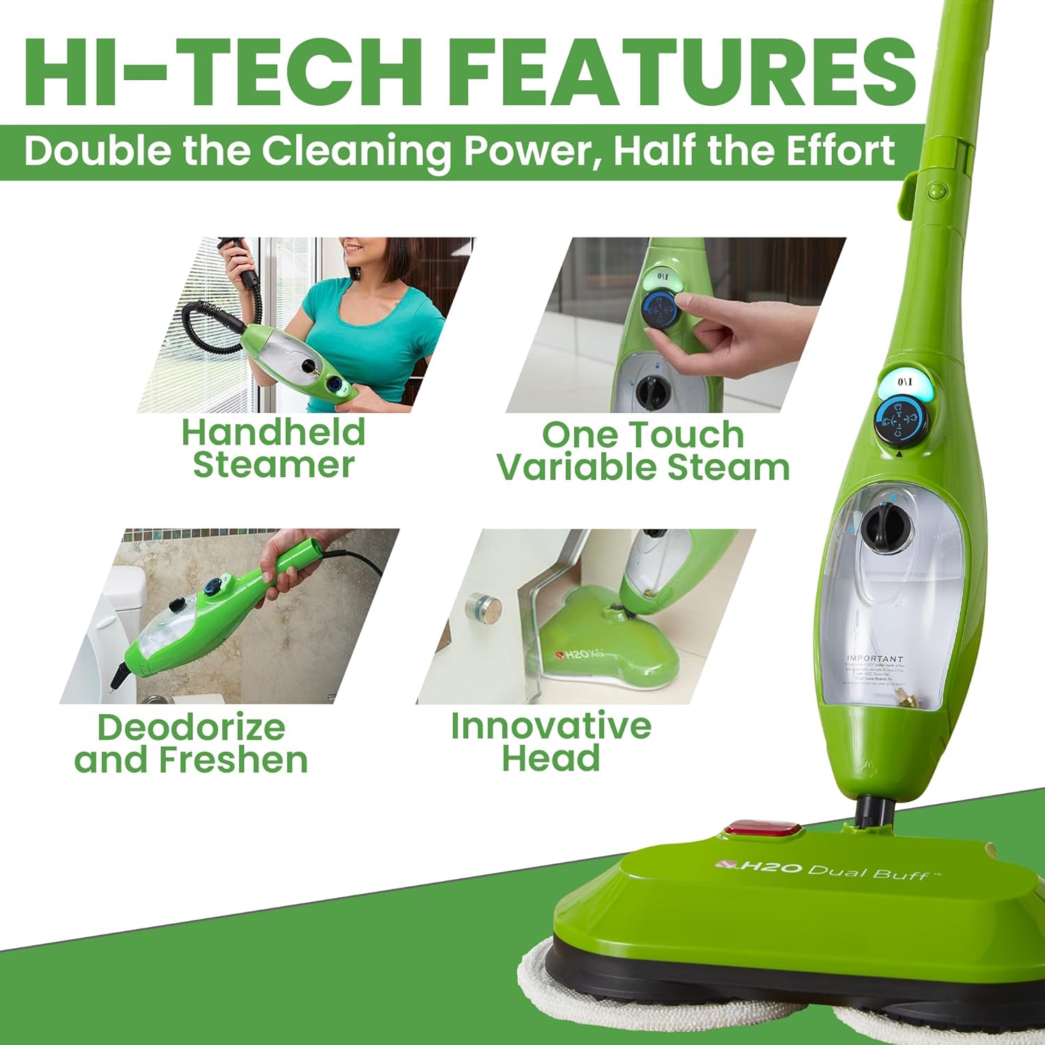 - 8 IN 1 FLOOR STEAM MOP: Double the Cleaning Power, Half the Effort All-In-One Steam Mop, Floor Polisher, Scrubber, Lightweight, Fast, Powerful, & Completely Chemical Free!