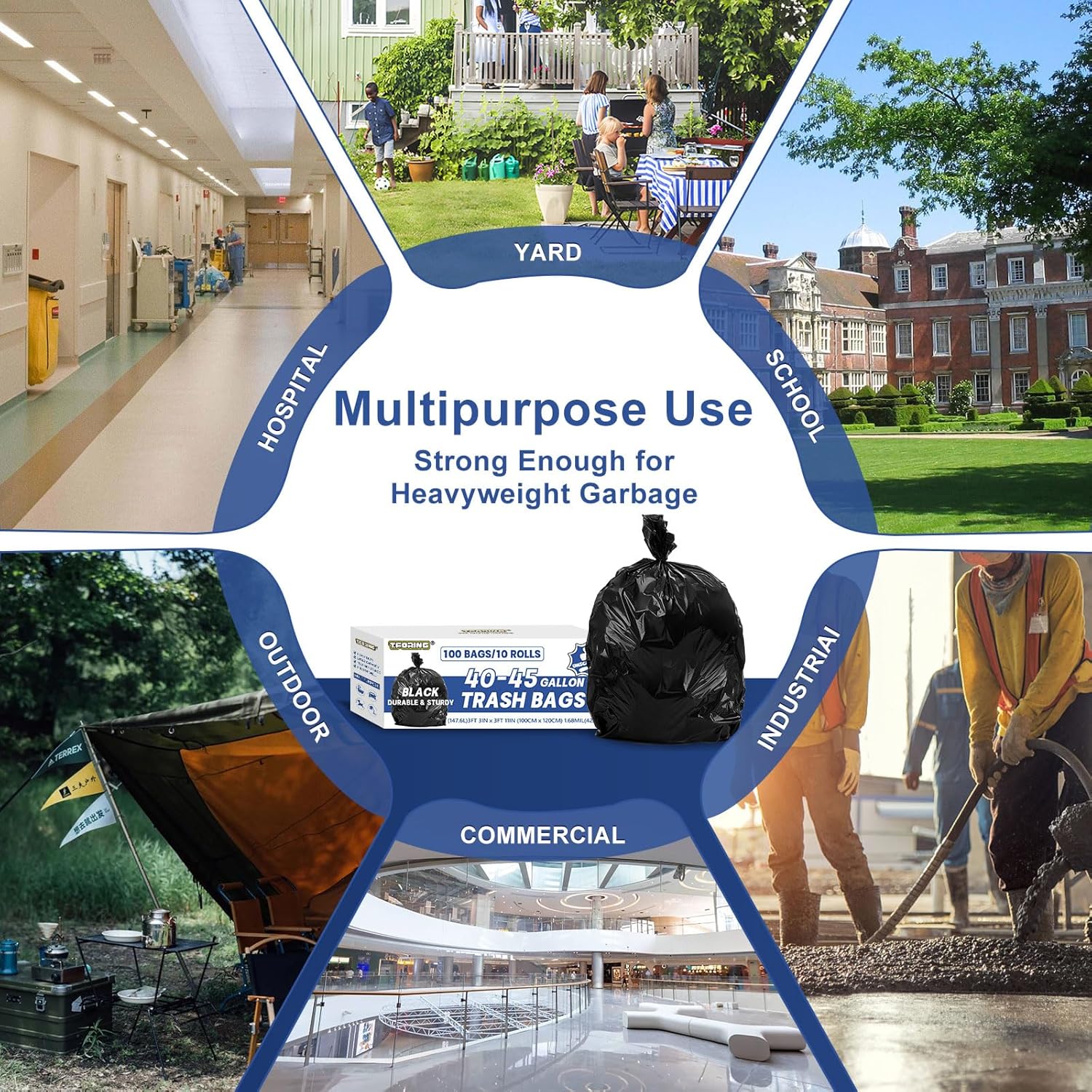 - 【MULTIPURPOSE BAGS】If you need a heavy duty garbage bag that can hold up to heavyweight garbage or that you need to stuff with yard waste, this is your bag. And these trash can liners can also be used for commercial, industrial, construction, etc.