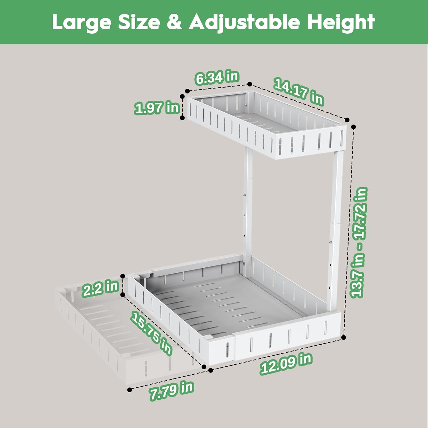 - Height Adjustable: Our kitchen organizers and storage comes with 2 adjustable metal tubes with 3 heights (13.7"/15.75"/17.72") to fit the height of your cabinets and items. Leave enough space for tall bottles