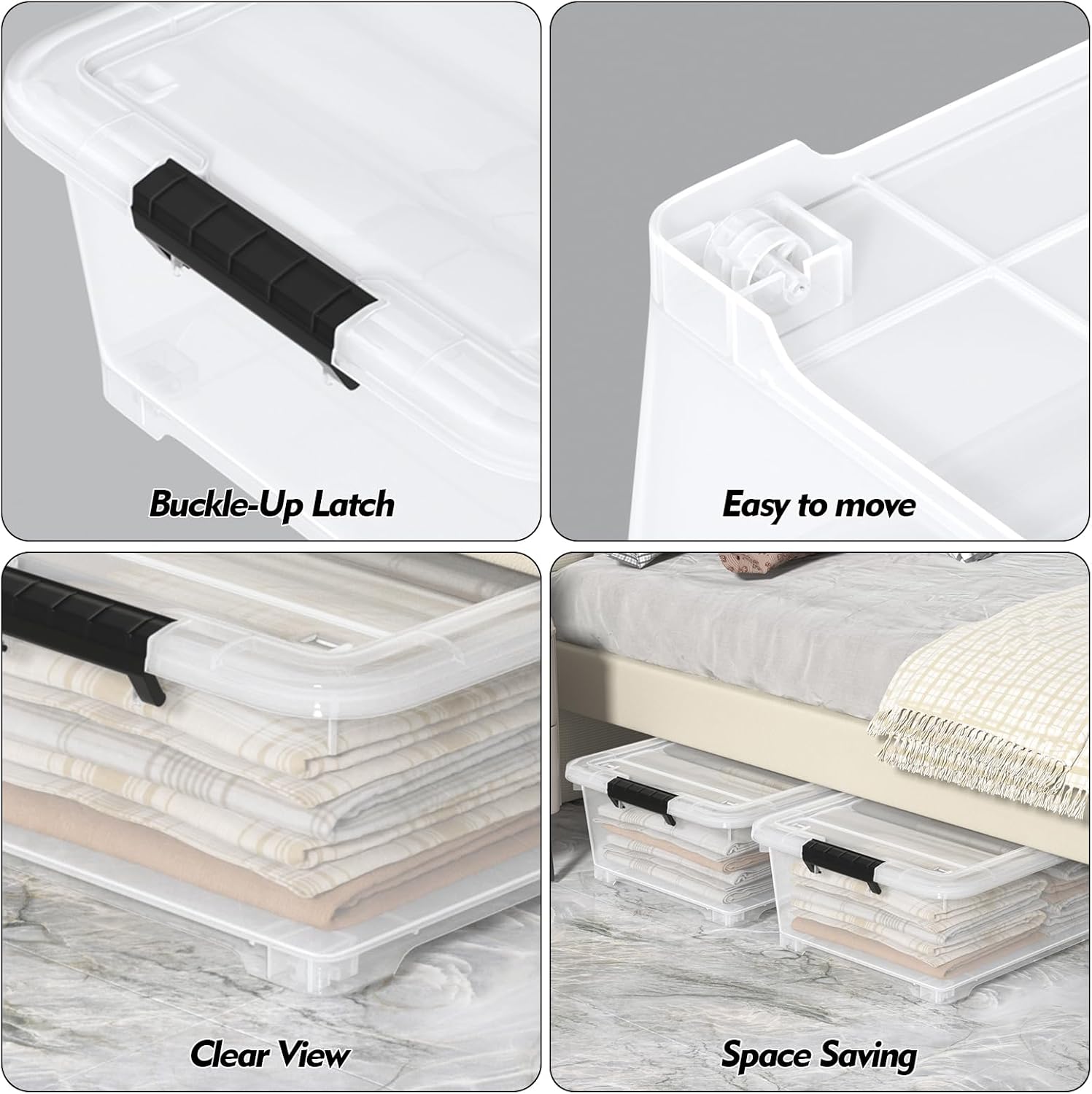 20L Under Bed Storage Containers, Closet Organizers and Storage Bins, Under Bed Storage Box with Wheels, Set of 4