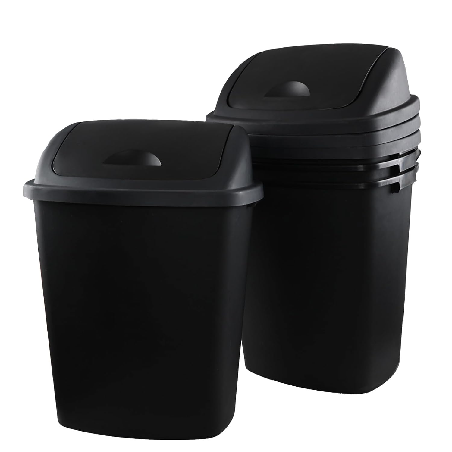 18 Gallon Large Plastic Kitchen Trash Can with Swing Lid, 4 Pack Tall Kitchen Garbage Can with Lid, Black