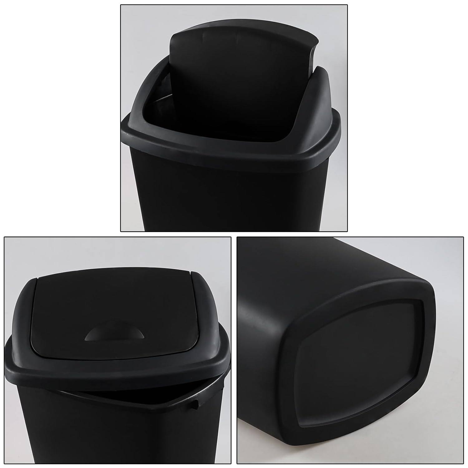 - Large plastic swing top trash can, with 18 gallon capacity, ideal for indoor or outdoor use