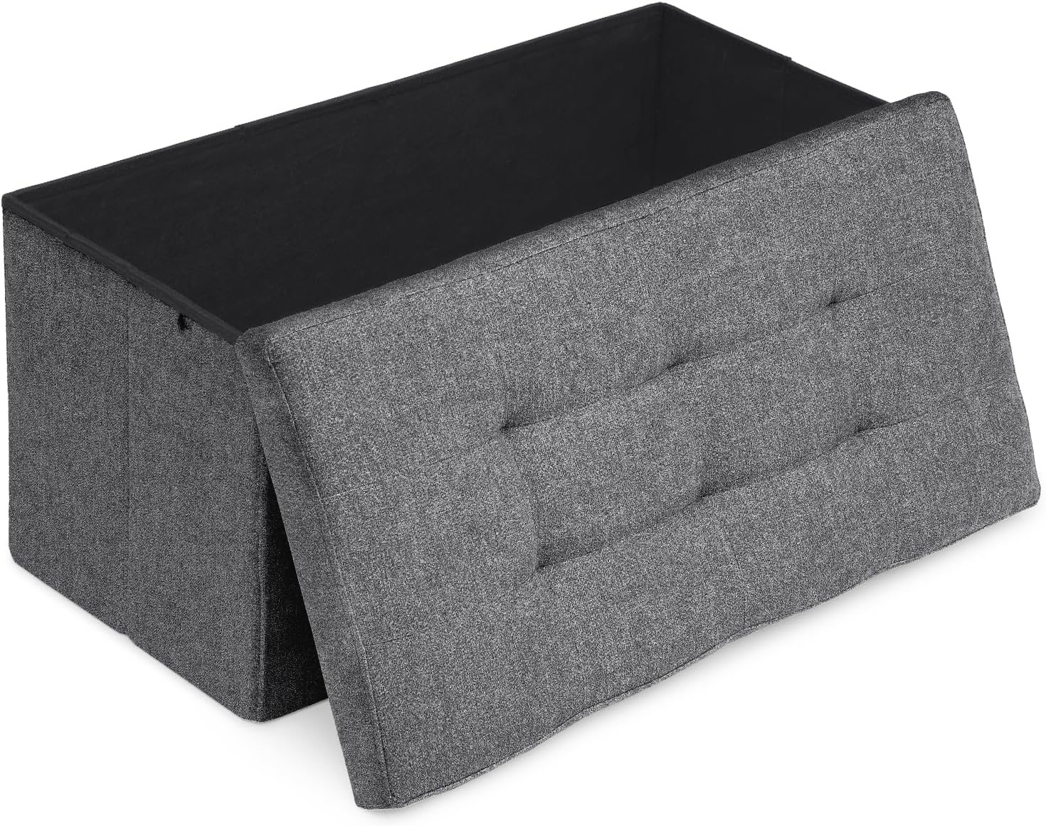 Athena Collection 30" Storage Ottoman Bench Folding Bench with 90L Hidden Storage, Large End of Bed Bench Linen Foot Rest Stool Chest with Flipping Lid for Living Room, Bedroom, Entryway, Dark Gray