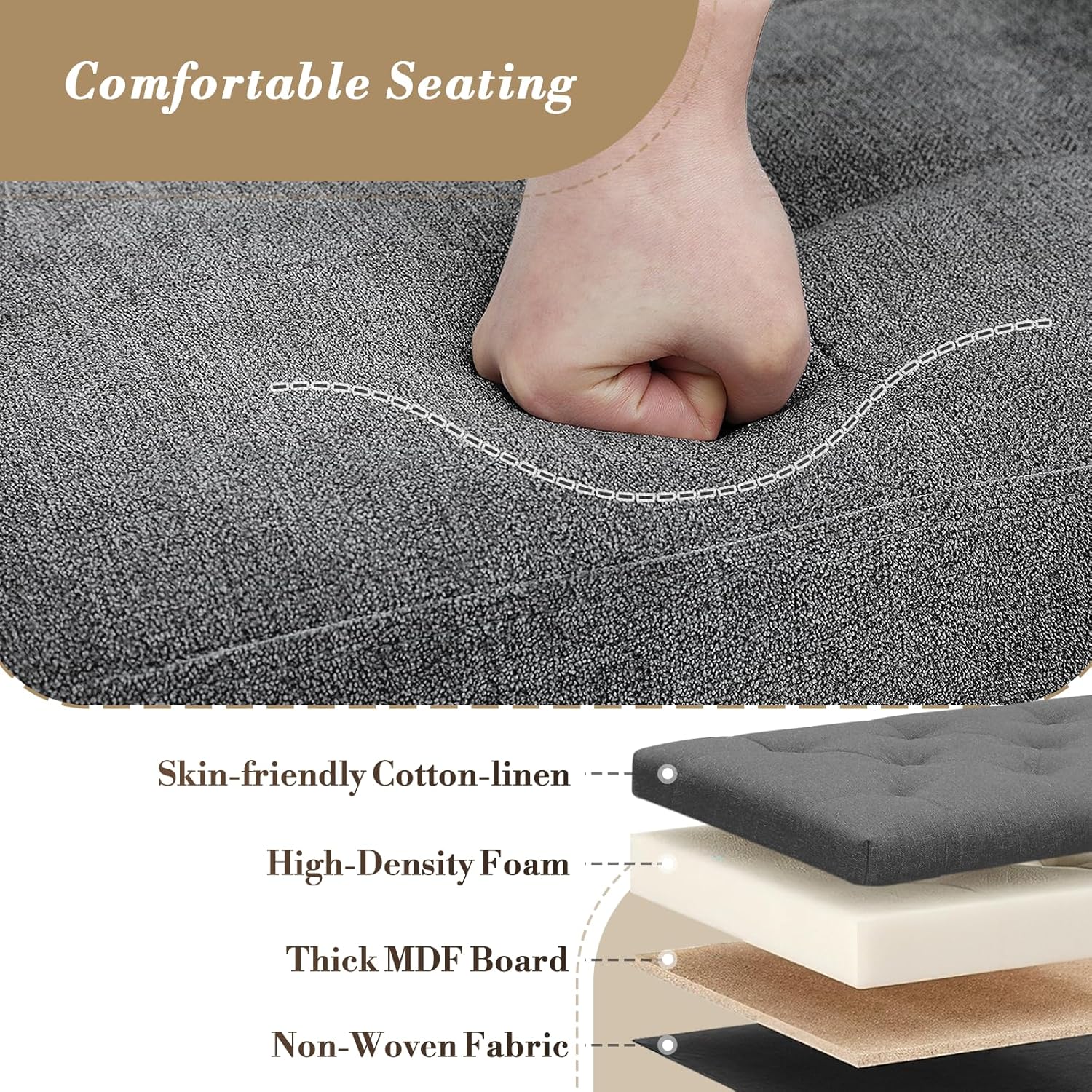 - Comfortable Seating: The large folding footstool bench is made of high-density foam and covered in a linen-look fabric that is soft and skin-friendly, ensuring sitting comfort and breathability.