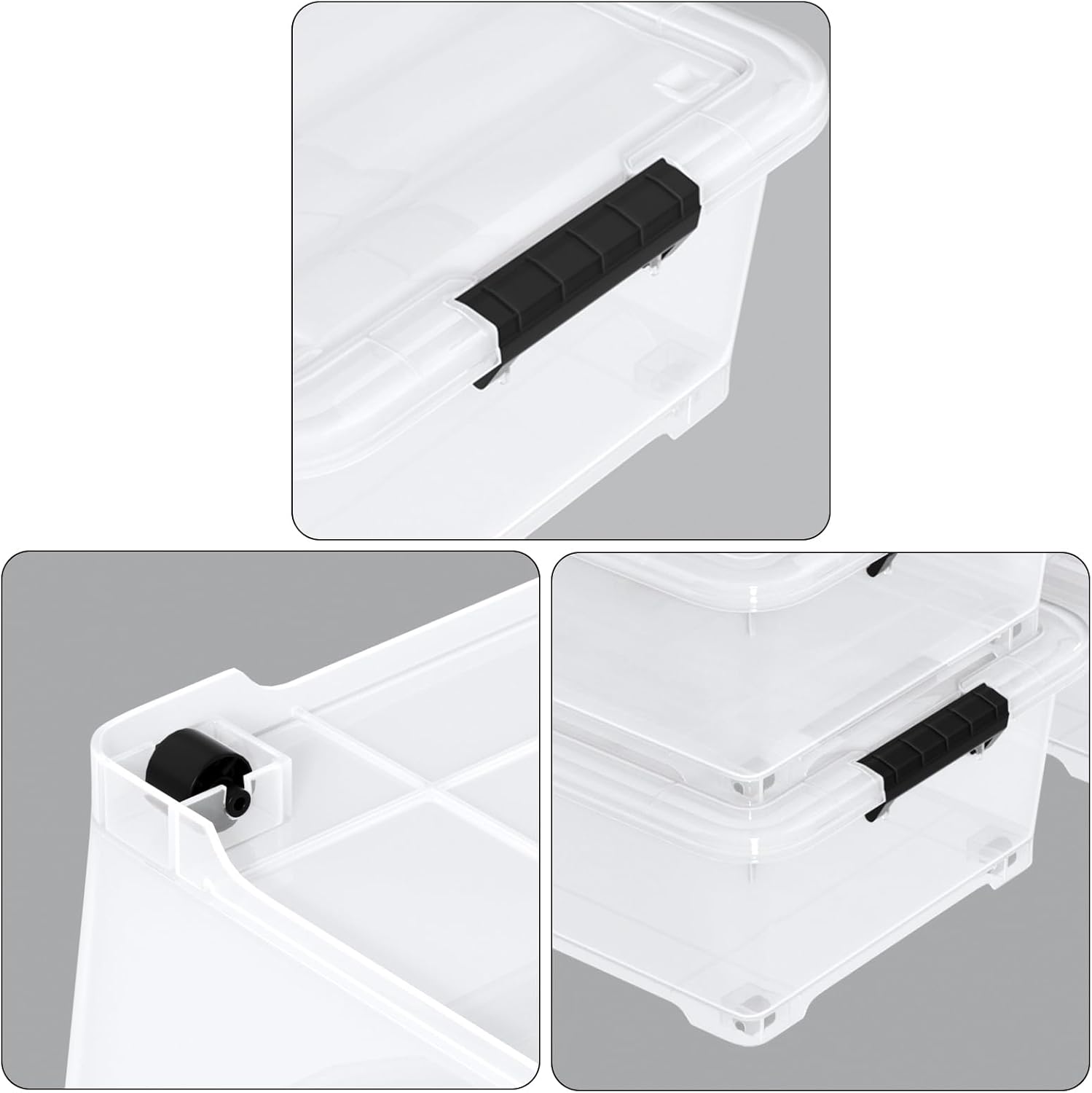 50 Quart Large Clear Plastic Under Bed Storage Bins with Wheels, 3-Pack Stackable Storage Bin with Latching Lid