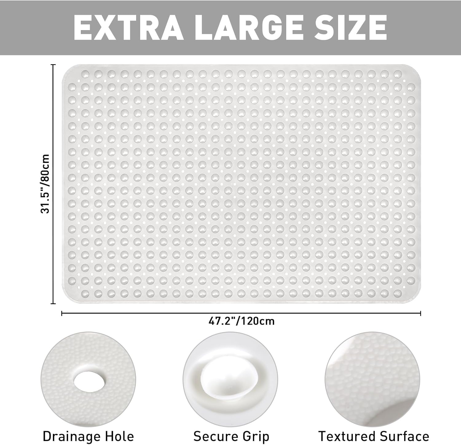 Shower Mat Non Slip: 47.2 x 31.5 Inch Extra Large TPE Shower Mats for Inside Shower - Anti Slip Shower Stall Matt with Drain Hole and Suction Cups for Elderly