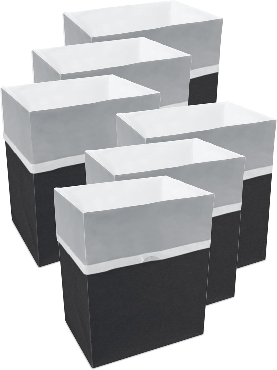 13 Gallon Disposable Trash Cans (6-Pack) with Fitted Trash Bags - Reusable Garbage and Recycling Bins for Parties, Events, and More (Black- 17" Height x 13.5" Width x 10" Depth)