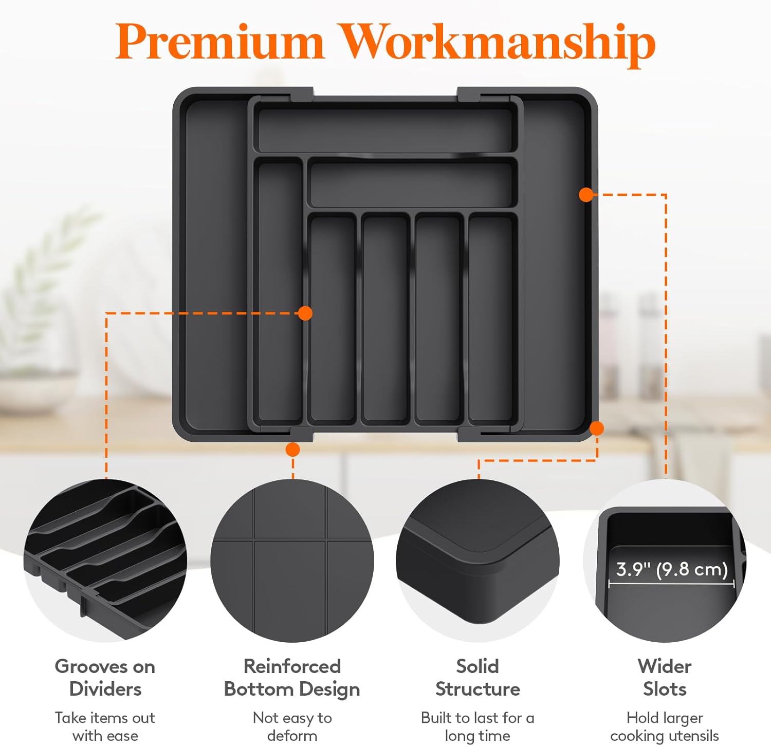 - Sort Your Silverware: The silverware tray comes with 7-9 compartments, creating more space in drawers for spoons, cutlery, and flatware. Streamline your cooking with a no-install organizer that keeps cutlery at your fingertips