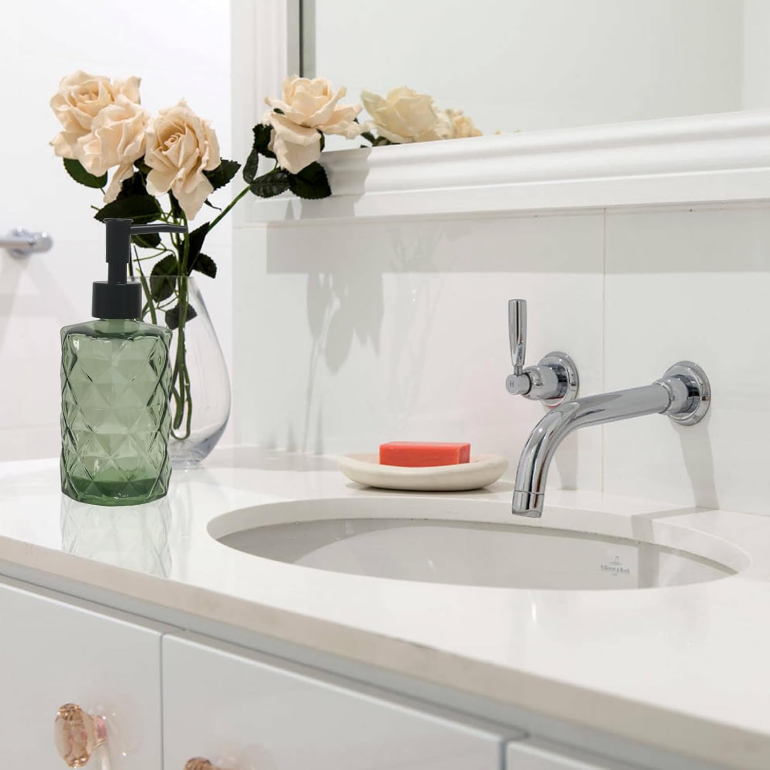 - Glass Soap Dispenser with Black Pump: Our green glass soap dispenser is made of high-quality lead-free glass, naturally and safely filled with various indoor liquids for daily use. Glass lotion bottle is reusable, refillable, environmentally friendly, and recyclable.