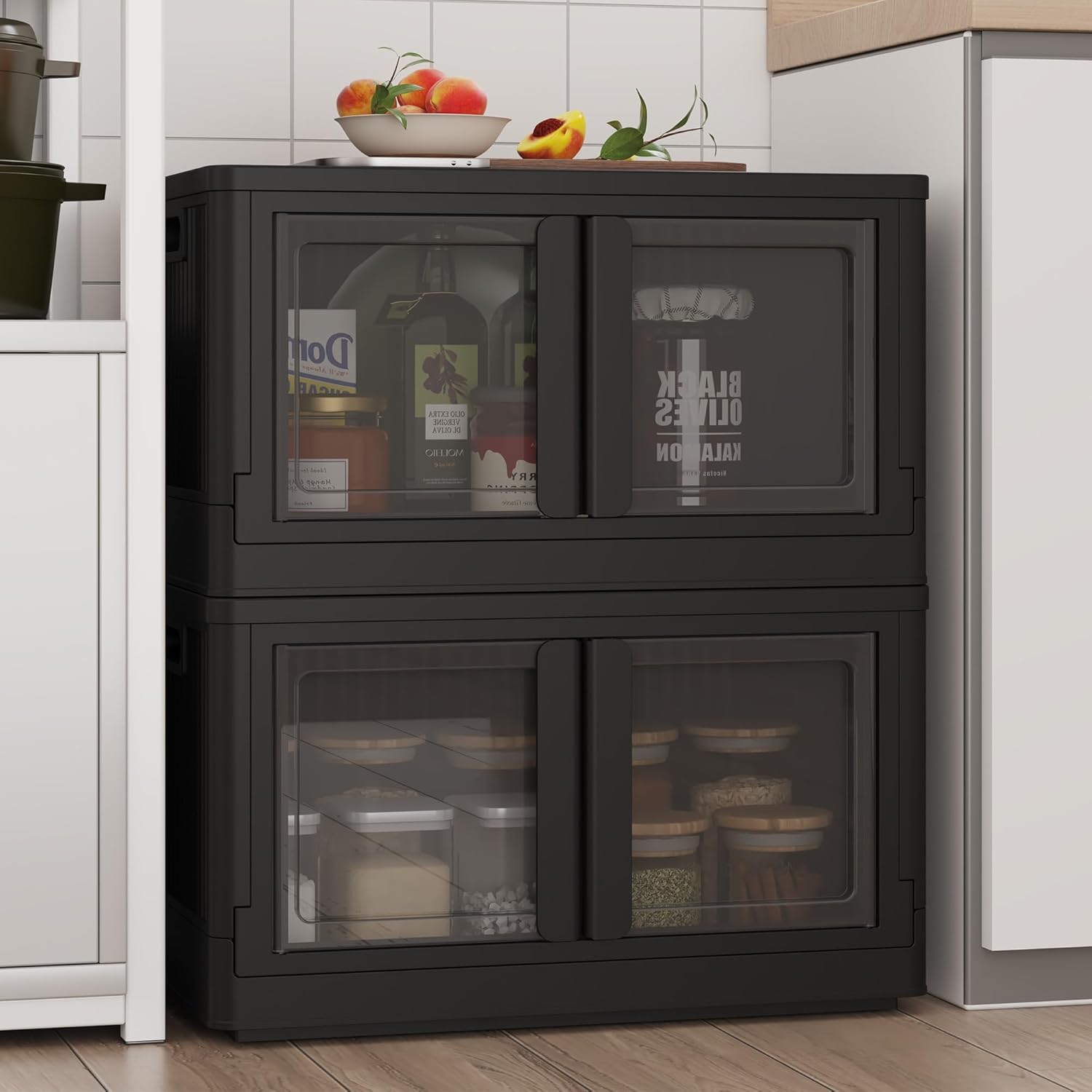- Dual-Opening Design: You can choose to open the top lid to access items or the front door for easier retrieval. The front door is also transparent, allowing for easy identification of storage contents. Plus, the front door is equipped with a built-in latch that can be locked and unlocked by simply turning the handle.