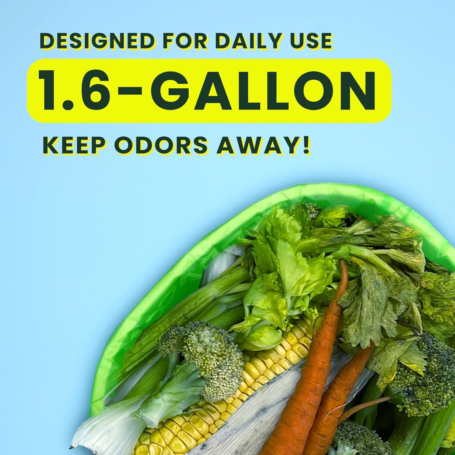 - More Responsible Choice:We all share the responsibility of saving the Earth. TERRACOR compostable bags are the ethical choice for a cleaner environment. Replace harmful plastic kitchen trash bags with compostable ones to reduce environmental waste.