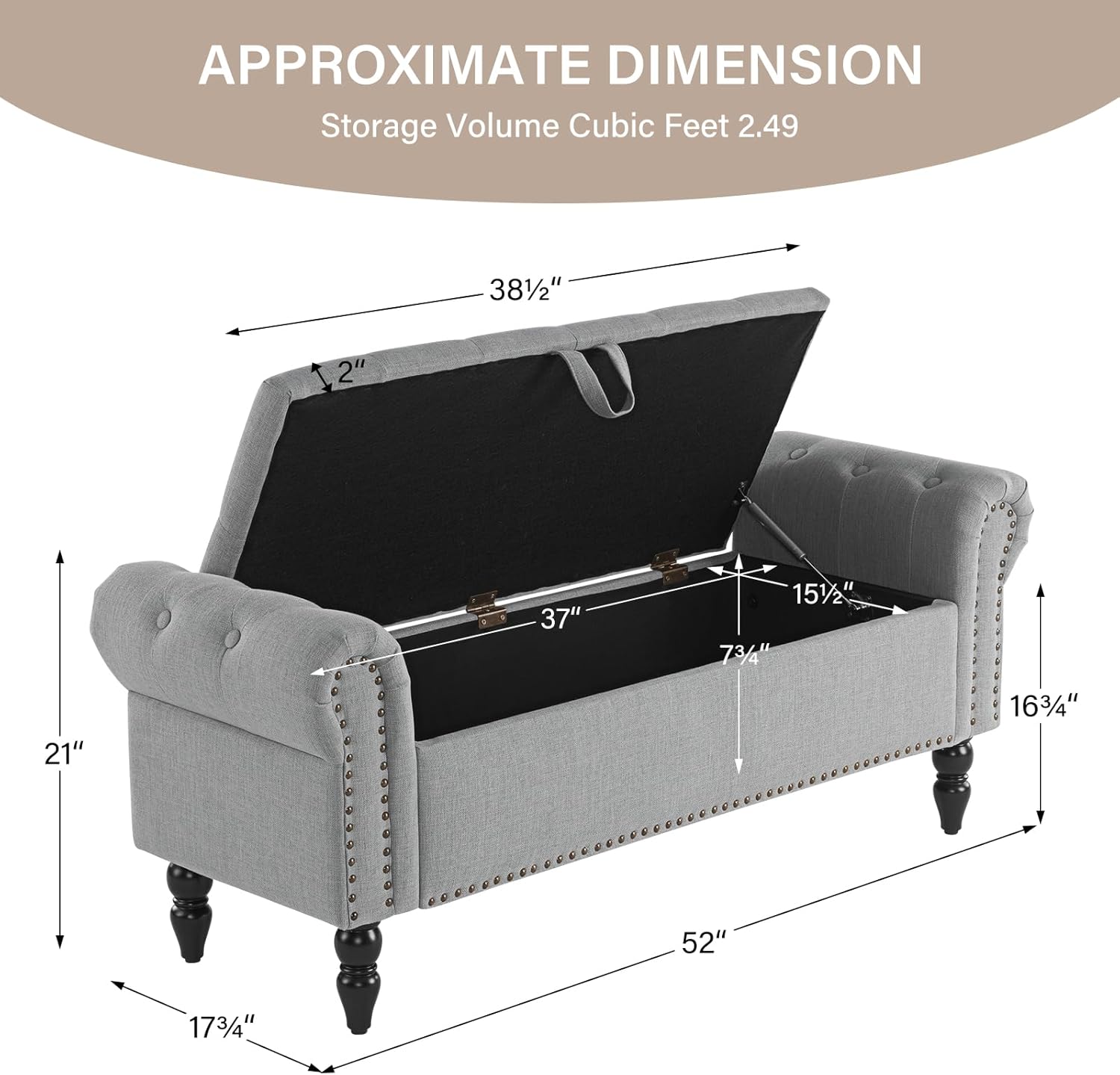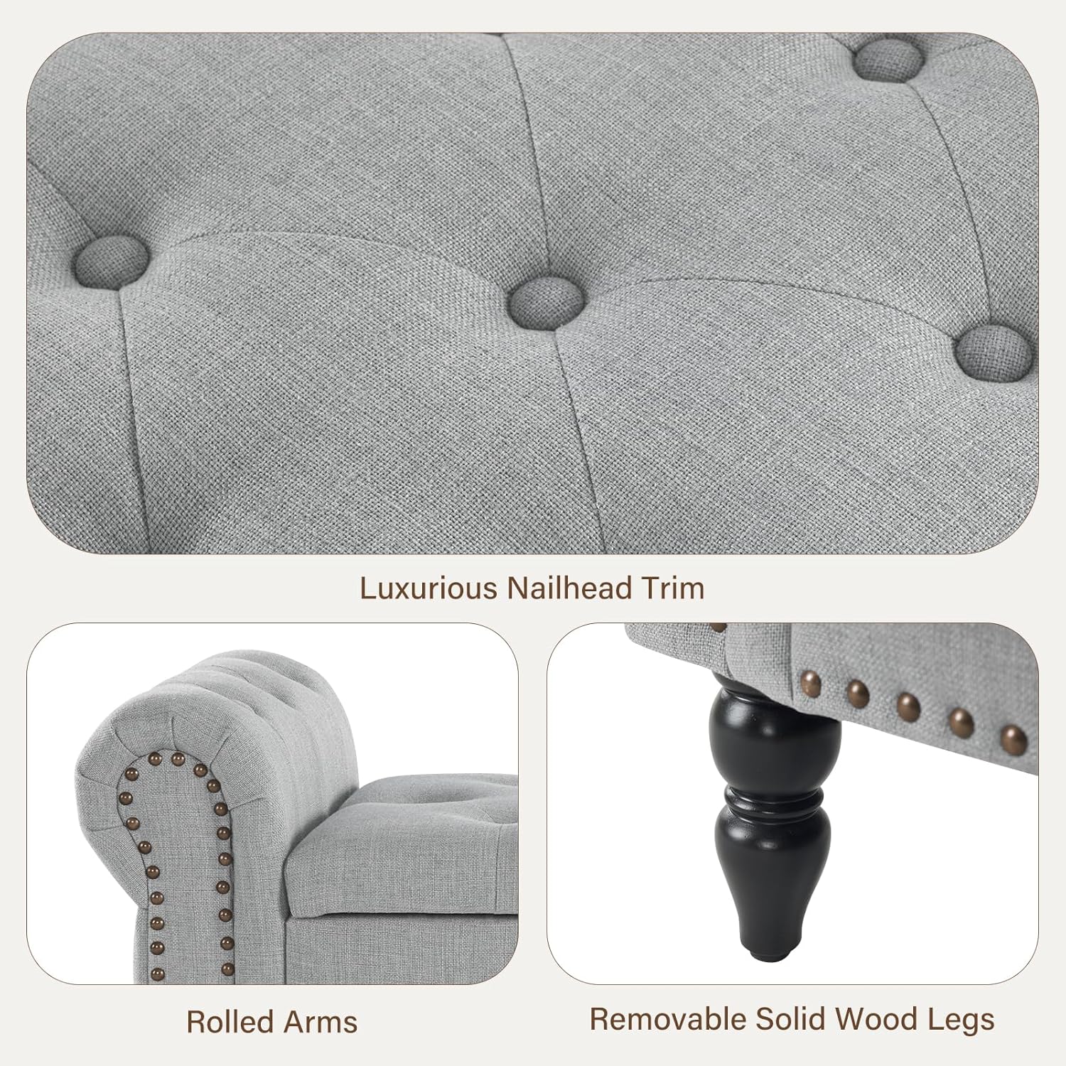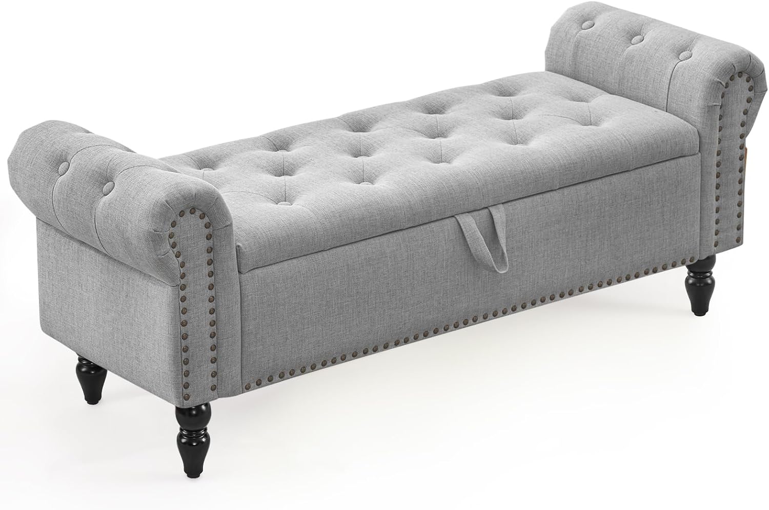 - [Mid-century Modern Bench] -Inspired by modern mid-century design concept, our upholstered bedroom storage bench end of bed features a foam-padded seat with high-quality faux linen. Rolled arms, button tufts and a luxurious nail head trim offer a nice finishing touch.