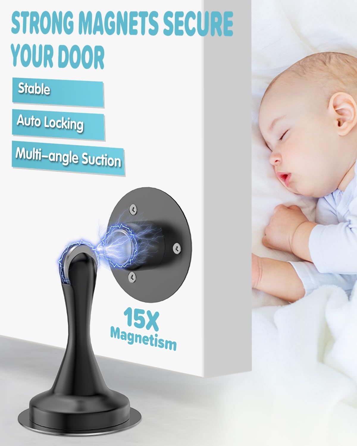 - [Enhanced Safety with Superior Magnetic Grip] Discover peace of mind with the HELEMAN Advanced Magnetic Door Stoppers, offered in a practical 4-pack. Designed to halt unexpected door slams from winds or accidental bumps, these stoppers serve as a discreet protector, keeping doors firmly open. Their soft-catch feature reduces noise and prevents damage to doors and walls, making them ideal for families with small children and pets by safeguarding against slamming doors