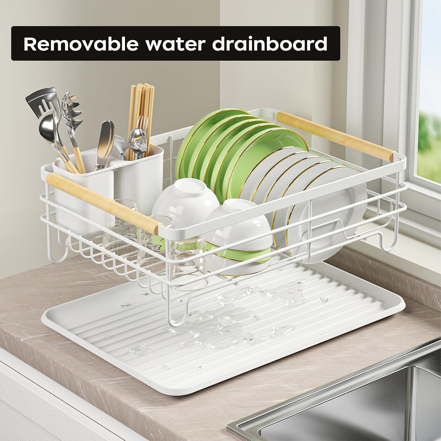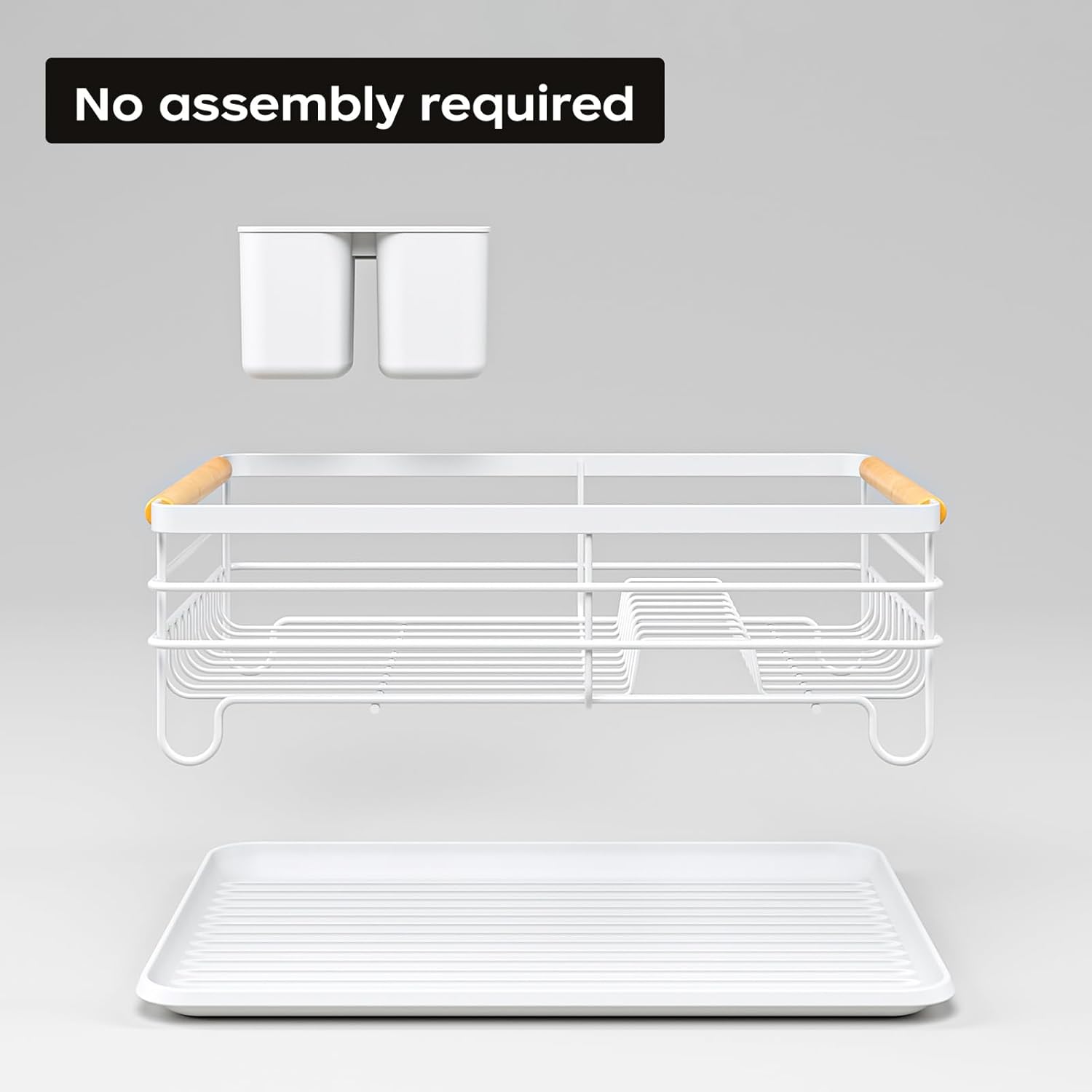 Dish Racks for Kitchen Counter: Wooden Handles, Thickened Metal, No Assembly. Small Dish Drying Rack: Ideal for Small Households. Drying Rack Kitchen: White