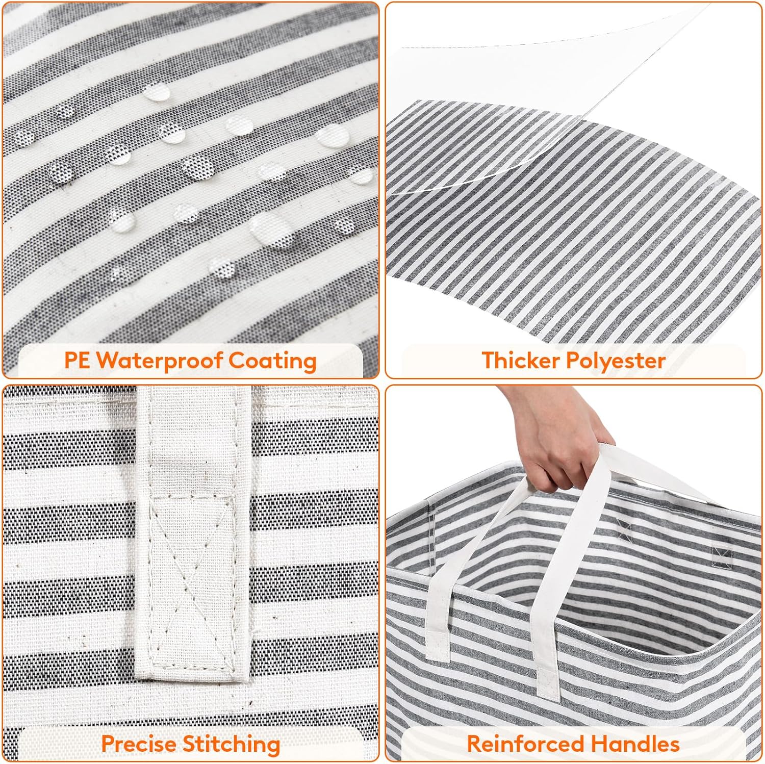 - Quality Material: Made from thick polyester and premium cotton, the waterproof laundry hamper has a PE waterproof coating on the interior, keeping stored items dry. To clean, simply wipe with a wet cloth