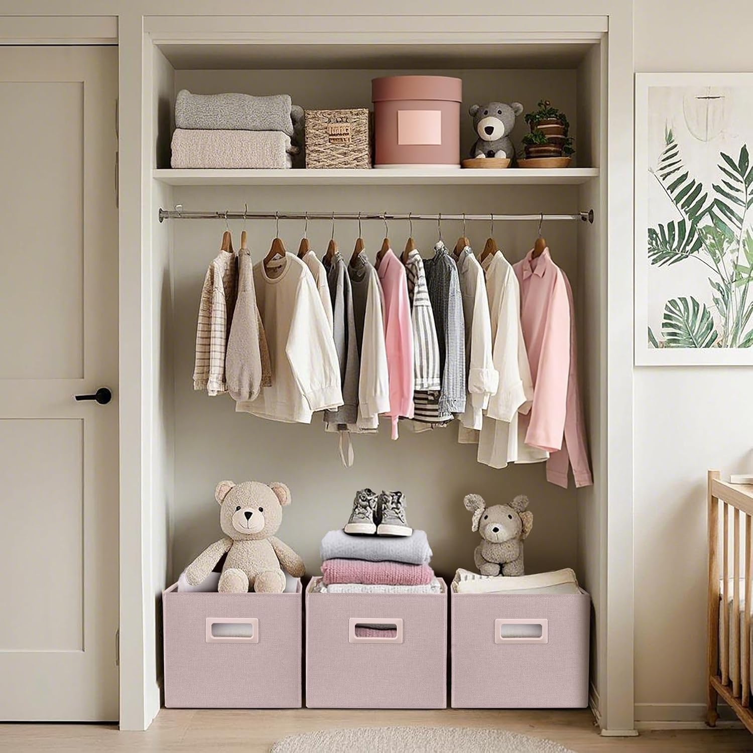 DECOMOMO Storage Bins for Shelves Robust Fabric Closet Bins for Shelves Toy Storage Clothes Books (Pack of 3 – Pink)