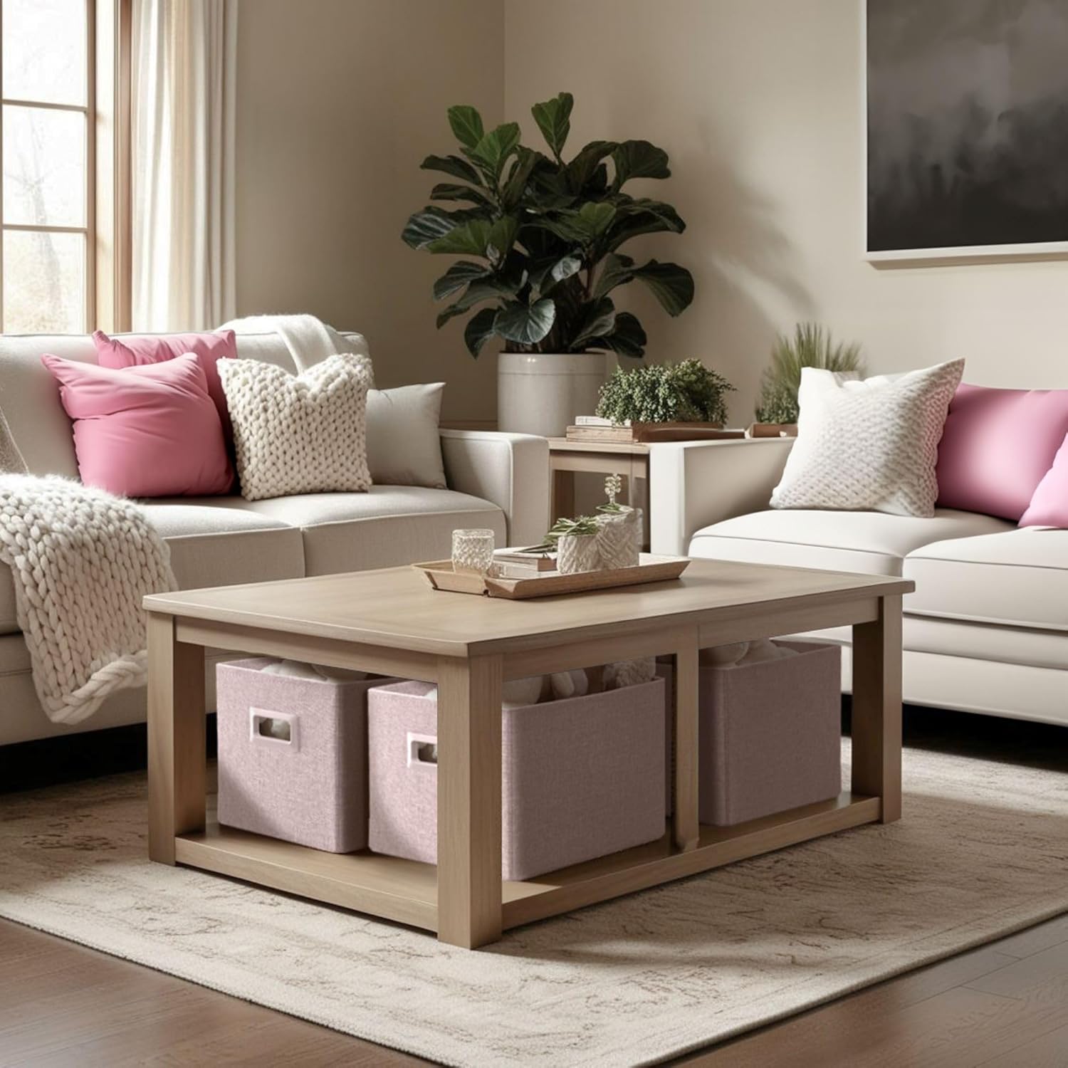 - Elegant Design: Crafted with a beautiful faux linen exterior and sleek cut-out handles for a clean, modern look. Stylish and practical large storage baskets for any home décor.